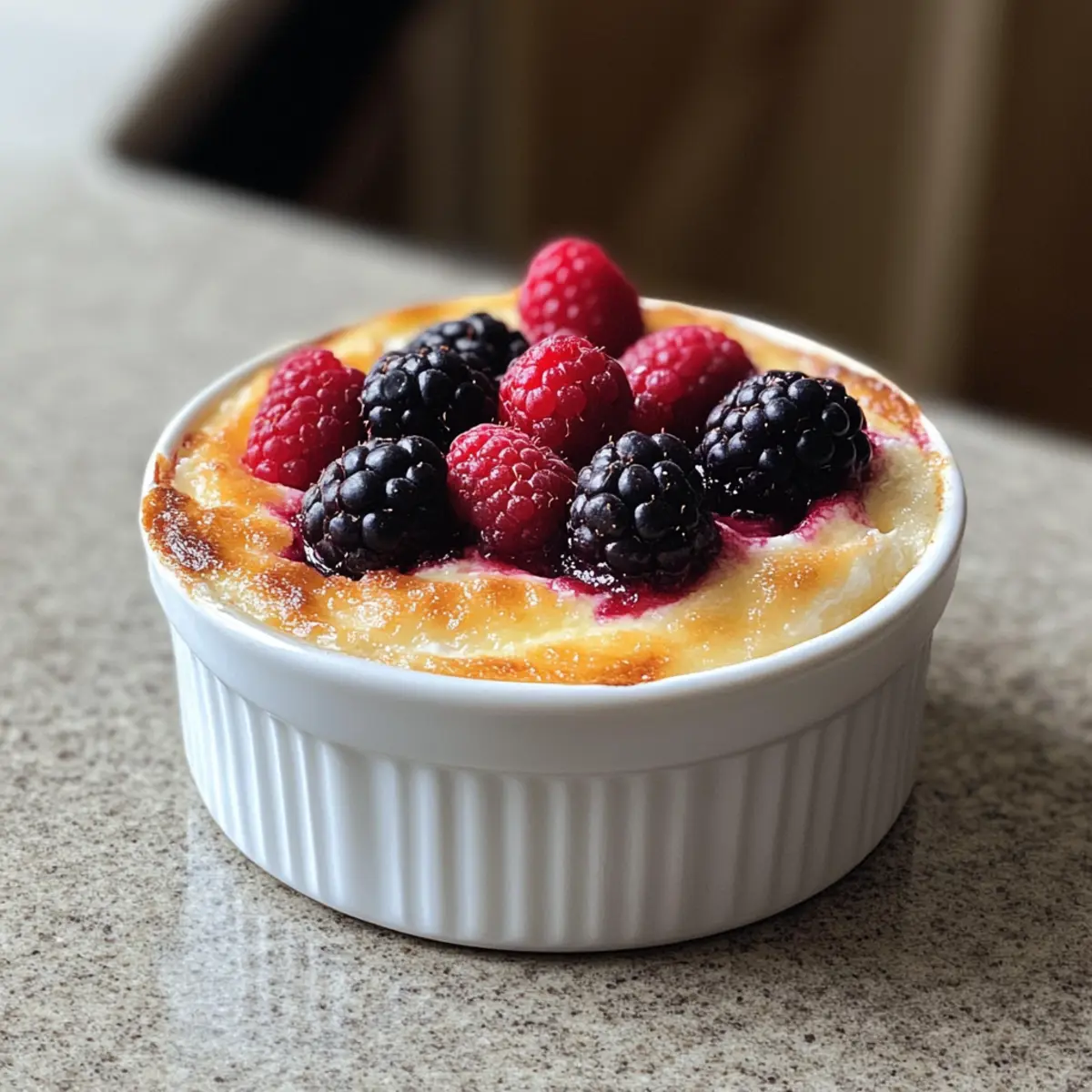 - Pour the mixture into the prepared ramekin, smoothing the top without exceeding the rim.