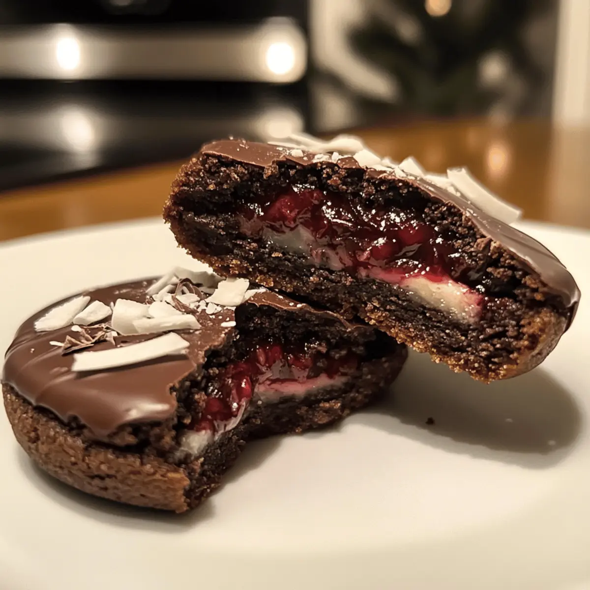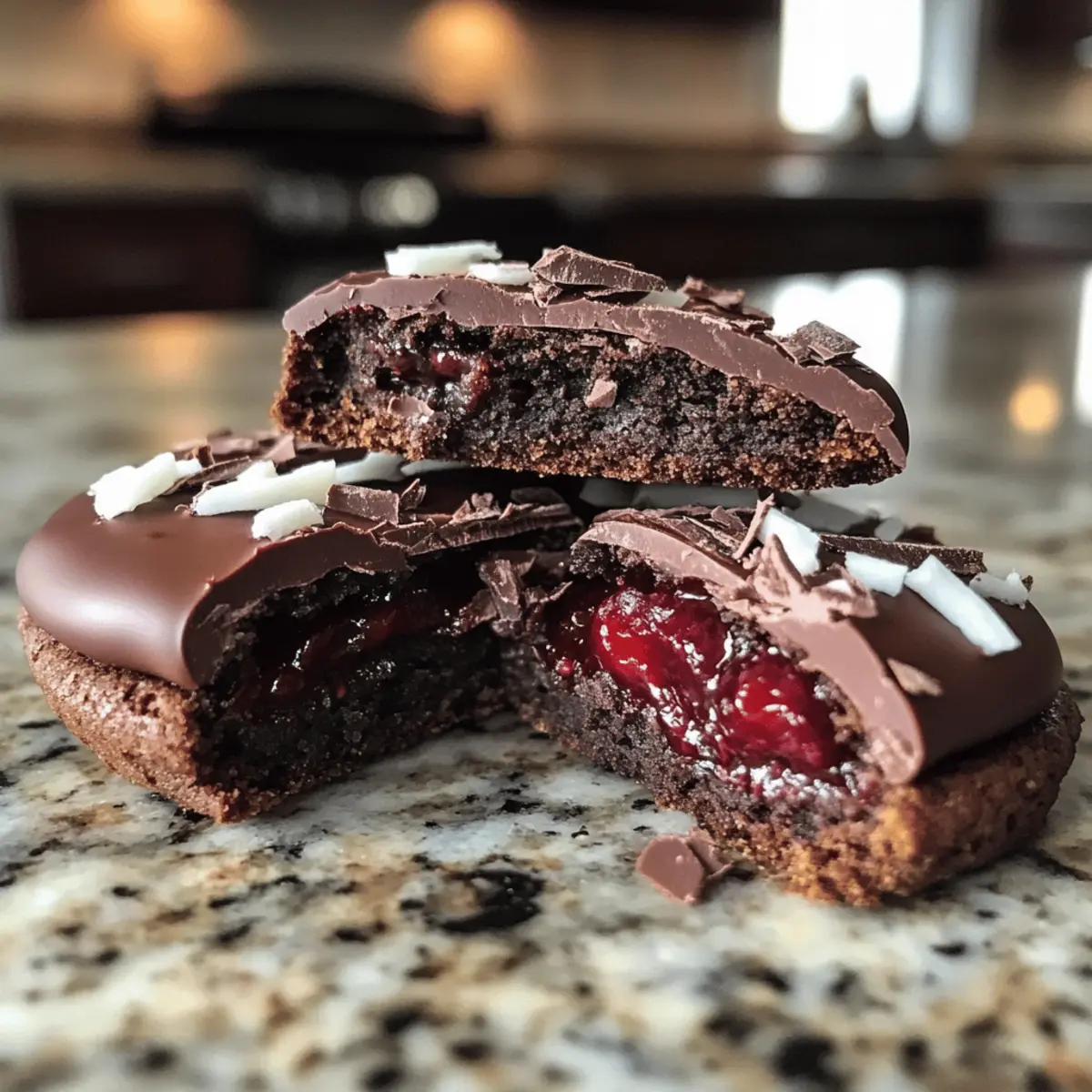- Spread ganache on half of the cooled cookies, top with cherry filling, and sandwich with remaining cookies.