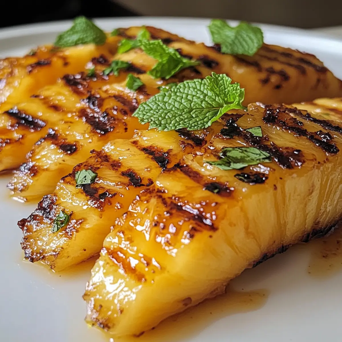 - Place coated pineapple on the grill and grill each side for 2-3 minutes until caramelized.