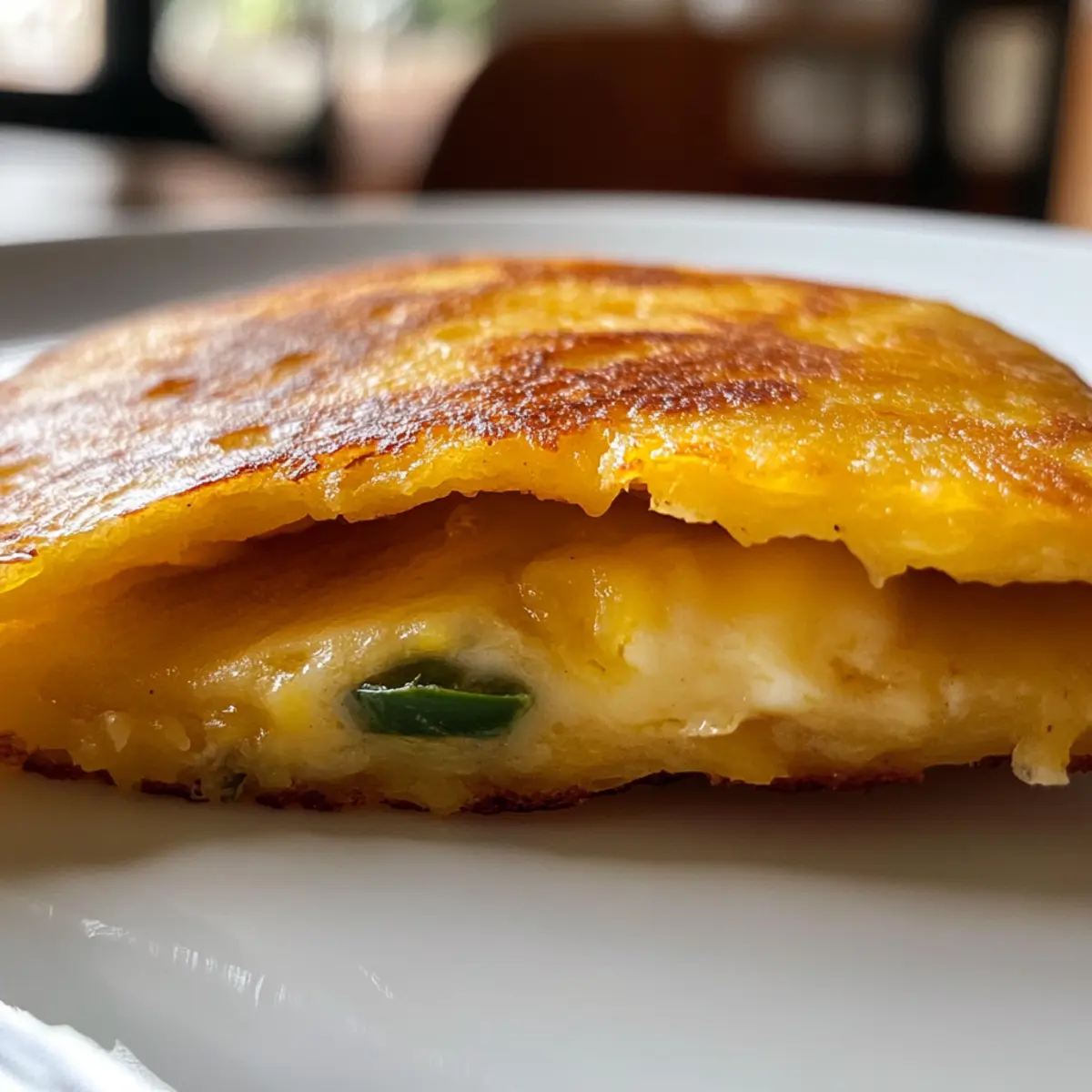 - Continue cooking the folded cachapas for an additional 1-2 minutes on each side until golden brown and cheese is melted.