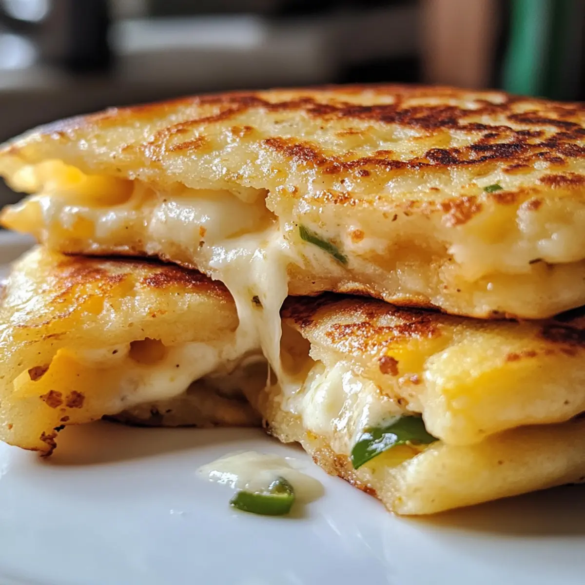 - If desired, add sliced jalapeños onto the uncooked pancake before flipping.