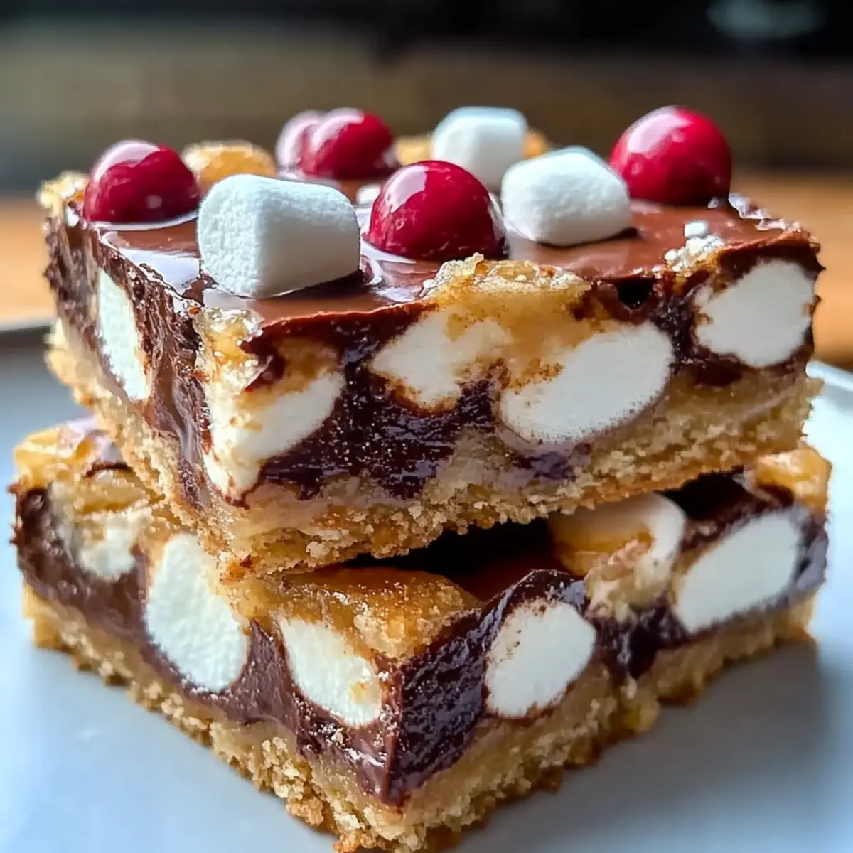 Allow the bars to cool completely in the pan at room temperature. Once they are cool, use a sharp knife to cut them into squares or rectangles. This cooling process is crucial to ensure that your Christmas bars hold their shape and don’t crumble when served. Enjoy the delightful combination of gooey marshmallows and rich chocolate in each bite!