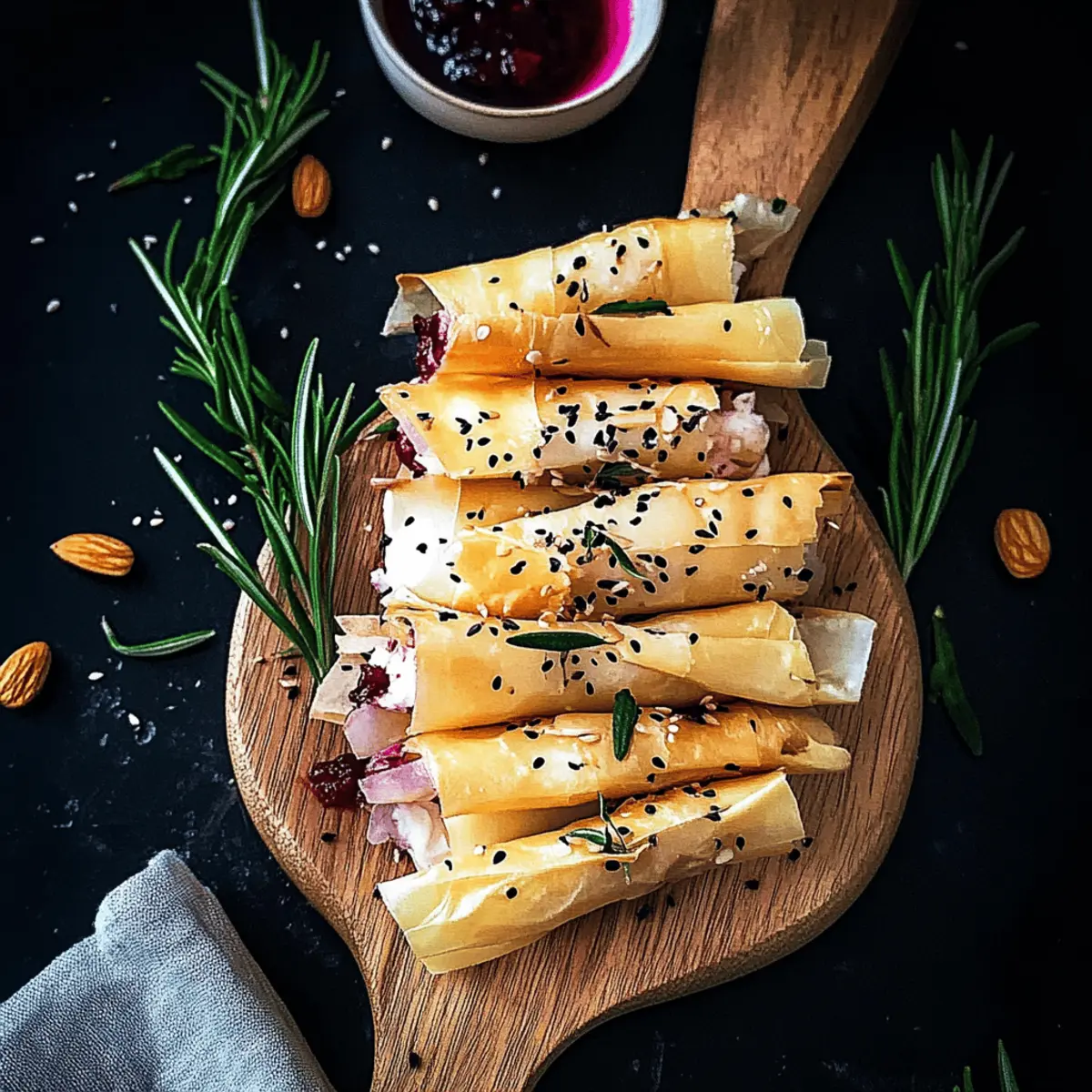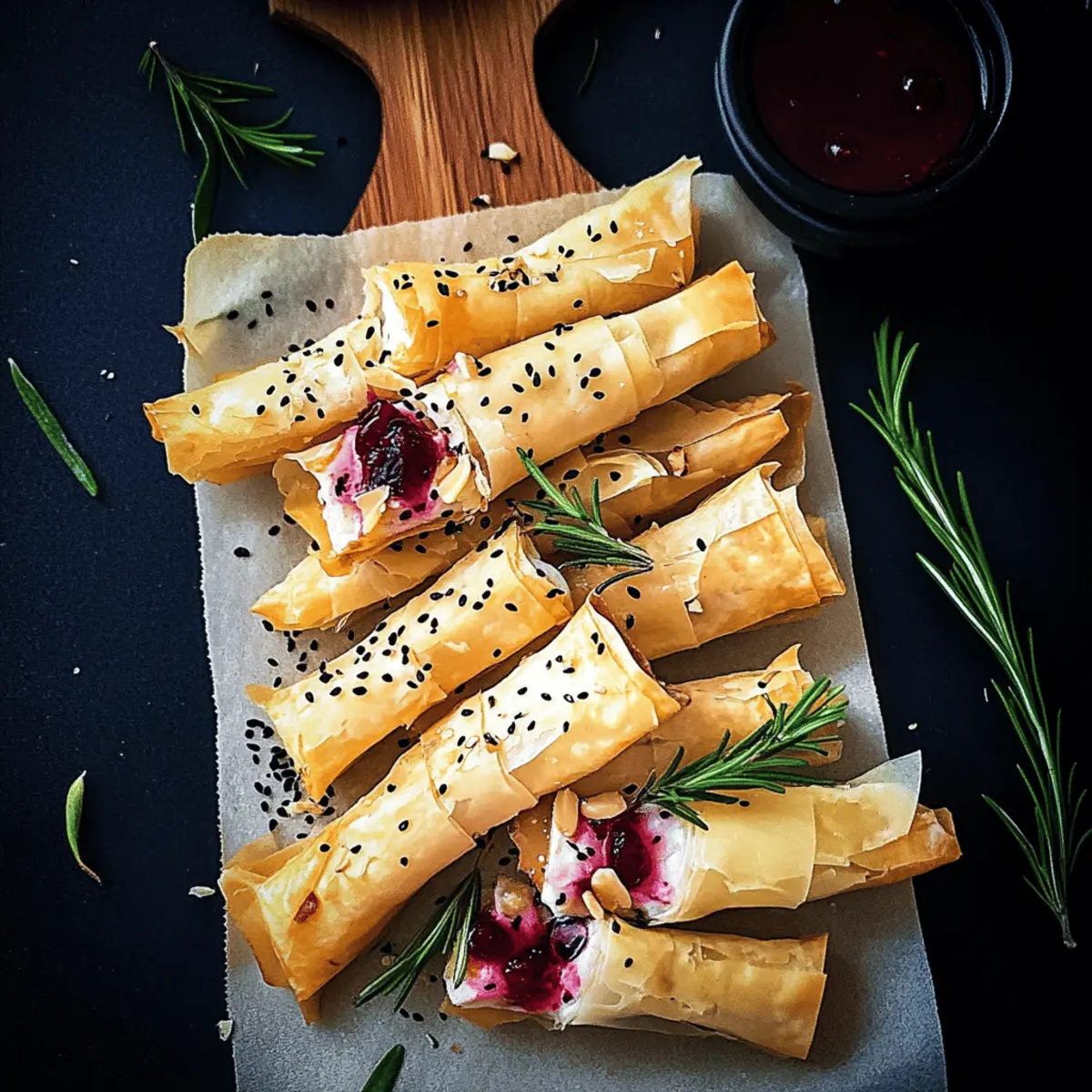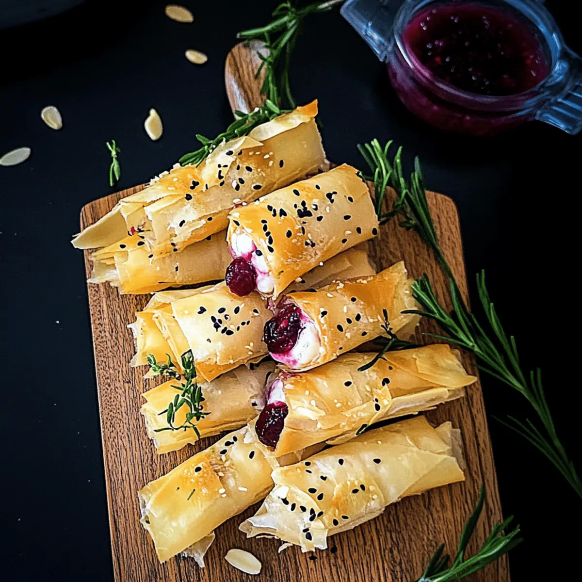 • Garnishing Options: Feel free to mix up the garnishes! Fresh herbs like thyme or parsley can elevate the presentation and flavor of your Cranberry and Brie Filo Crackers.