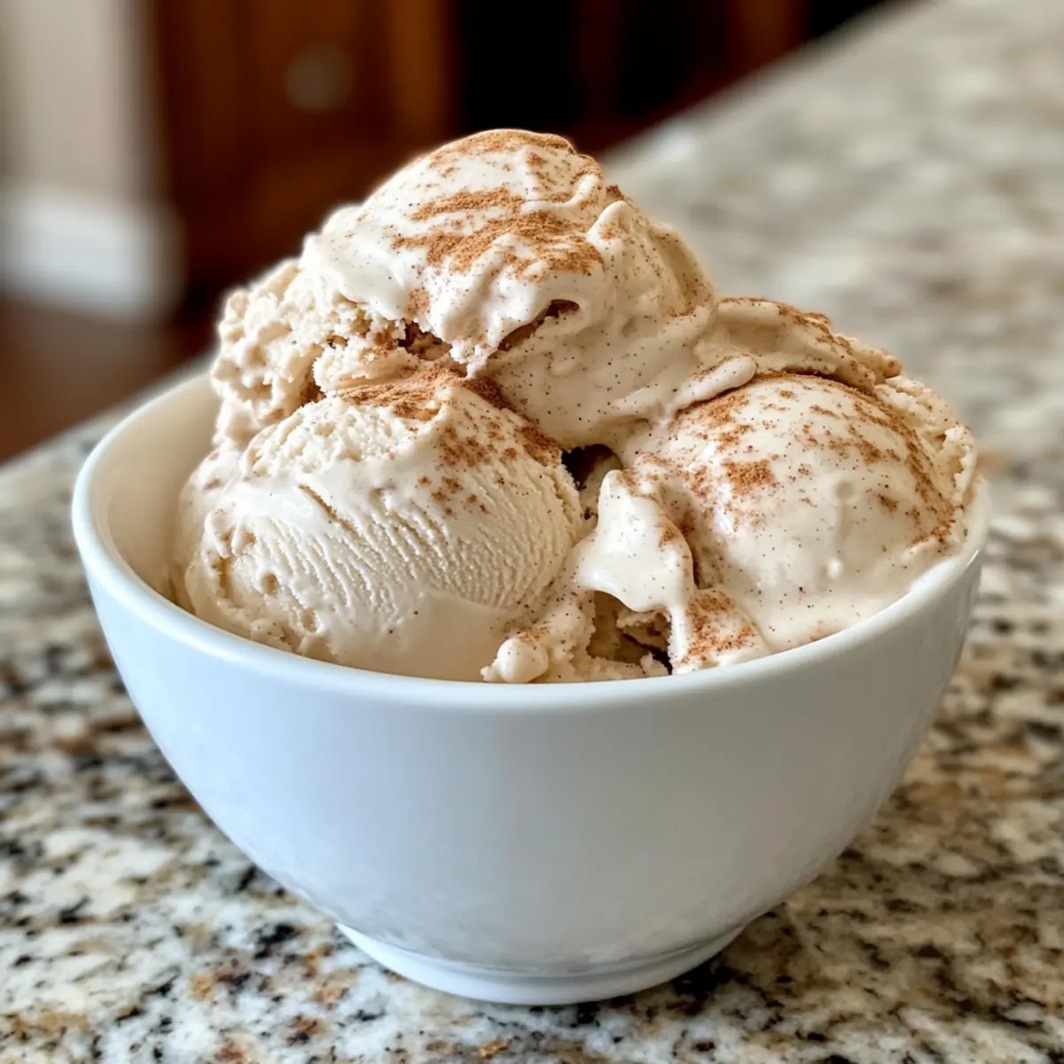 - When ready to serve, allow the ice cream to sit at room temperature for 5-10 minutes for easier scooping. Serve in bowls or cones, optionally dusting with cinnamon.