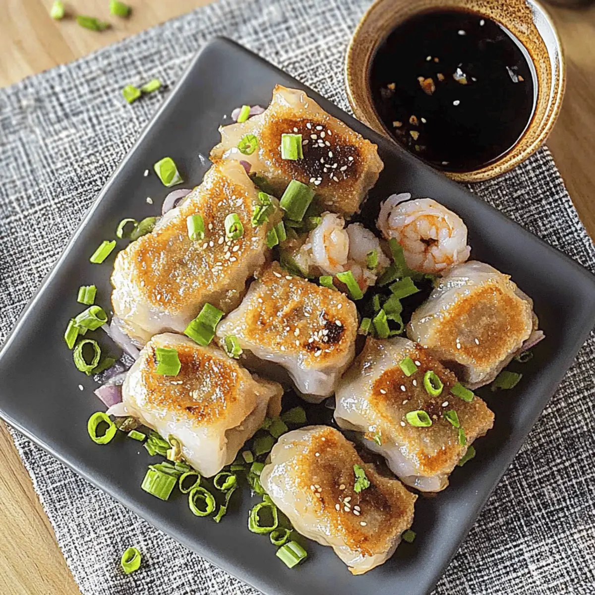 Flavor Explosion: The mix of shrimp, fresh veggies, and spices creates a delightful taste sensation that everyone will love. Customizable Quests: You can tailor the filling to fit your mood, whether it’s swapping shrimp for tofu or adding your favorite veggies. Quick and Easy: Ready in just 30 minutes, these dumplings are perfect for a speedy dinner or a fun appetizer that won’t keep you in the kitchen for hours. Gluten-Free Goodness: With gluten-free ingredients, everyone can dig in without worry—no more compromising flavor for dietary needs! Plus, they pair beautifully with a side of Crushed Garlic Potatoes for a satisfying meal.