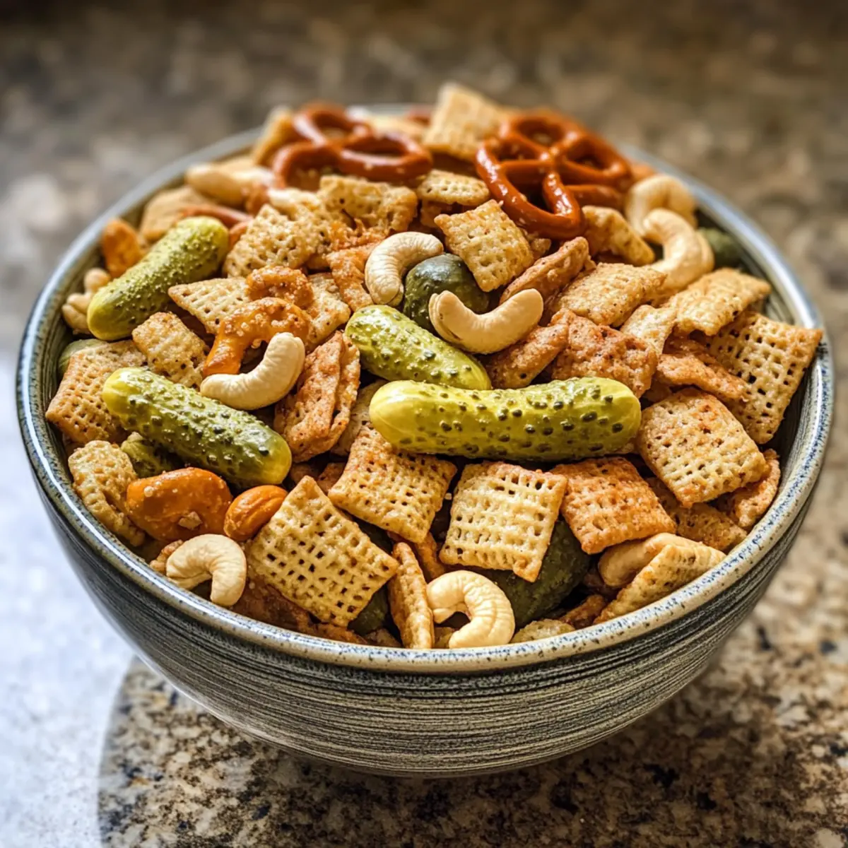 Flavor Variations: Feel free to add your favorite nuts or spices to customize the Dill Pickle Chex Mix, giving it a unique twist tailored to your taste.