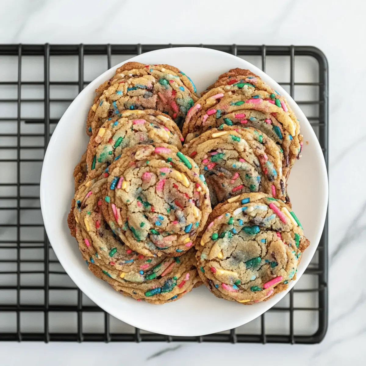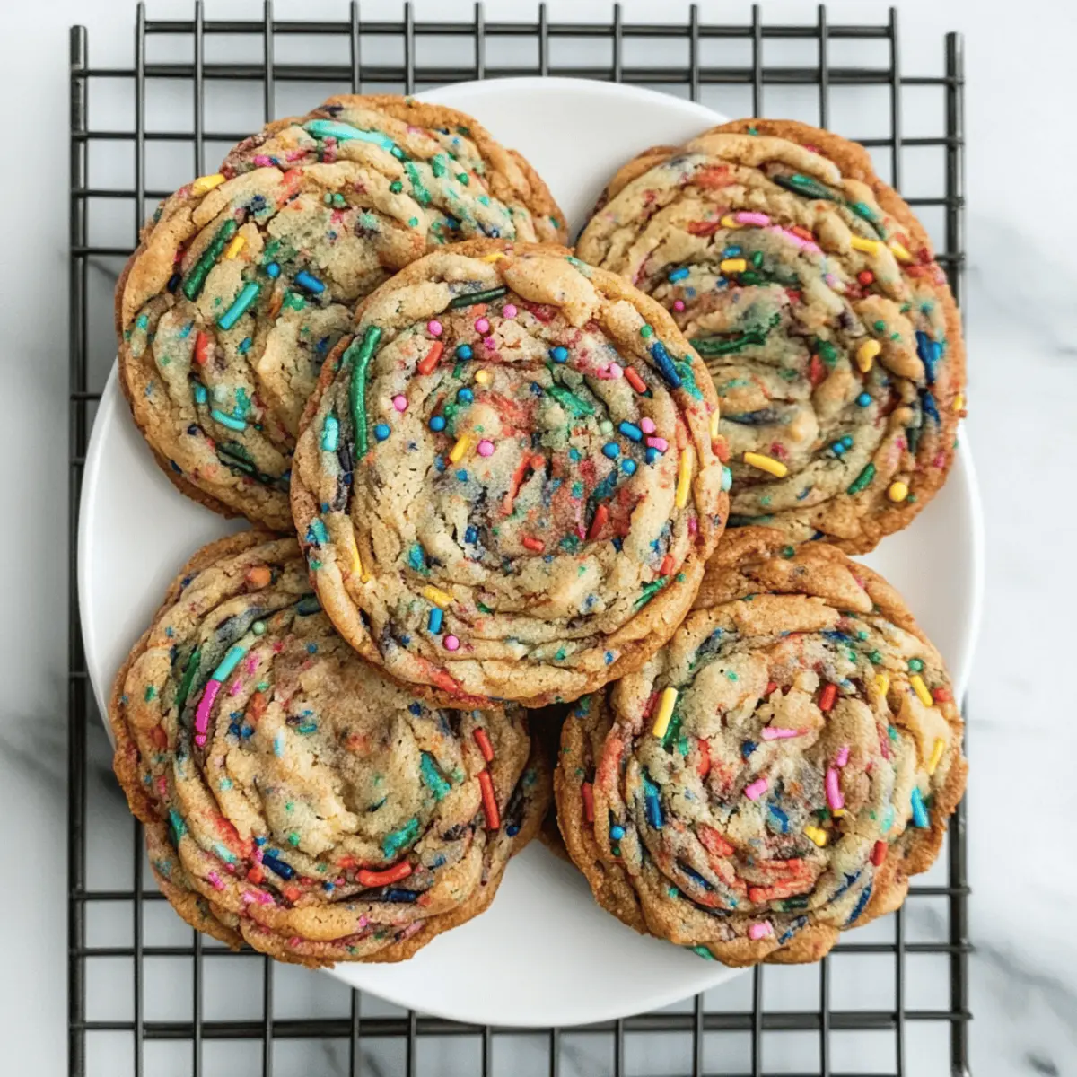 Vibrant Colors: These Funfetti Pan-Banging Cookies are truly a sight to behold, with colorful sprinkles that brighten any plate.