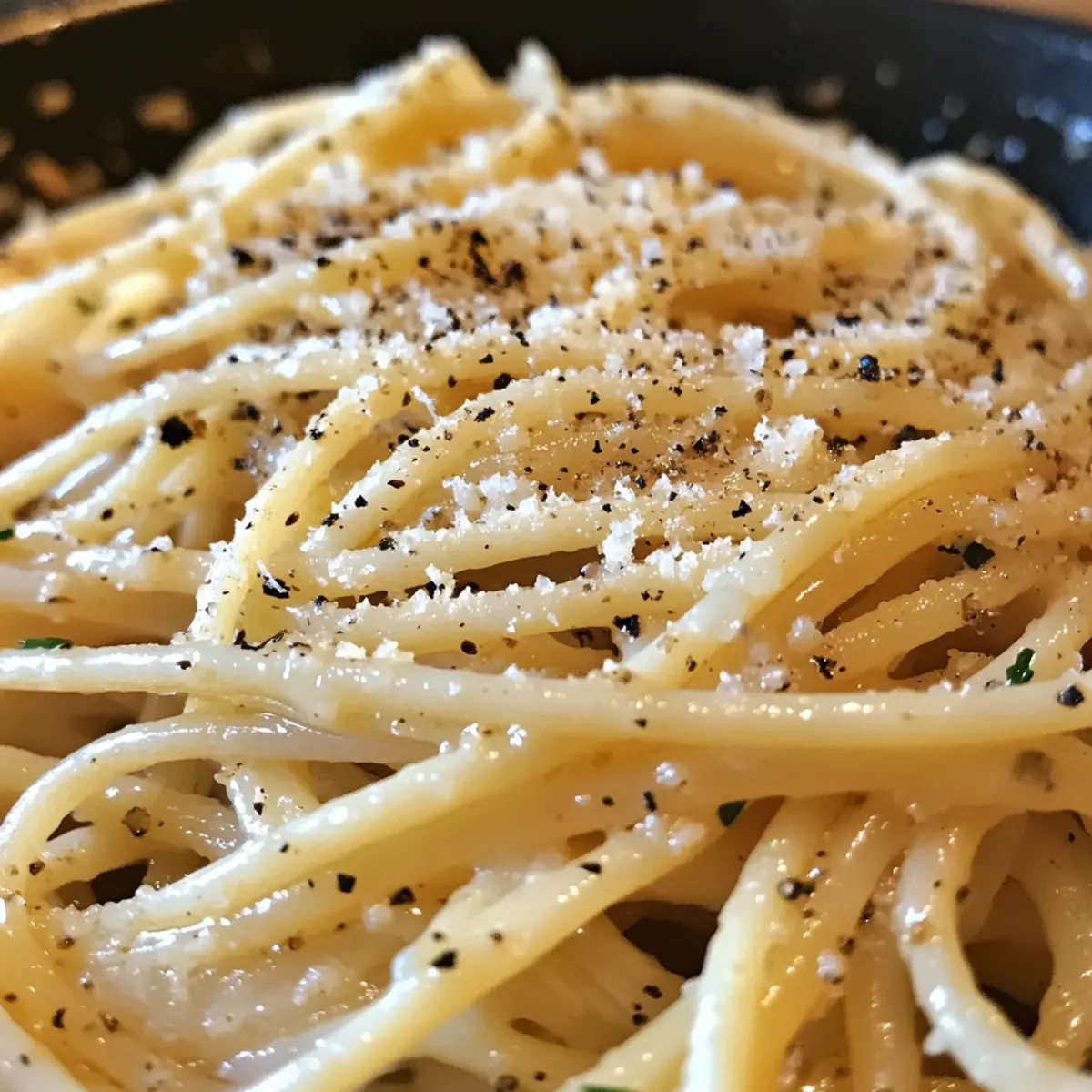 - In a large skillet over medium heat, melt the prepared garlic butter, then stir in freshly cracked black pepper. Pour in the reserved pasta water, stirring to create a silky sauce.