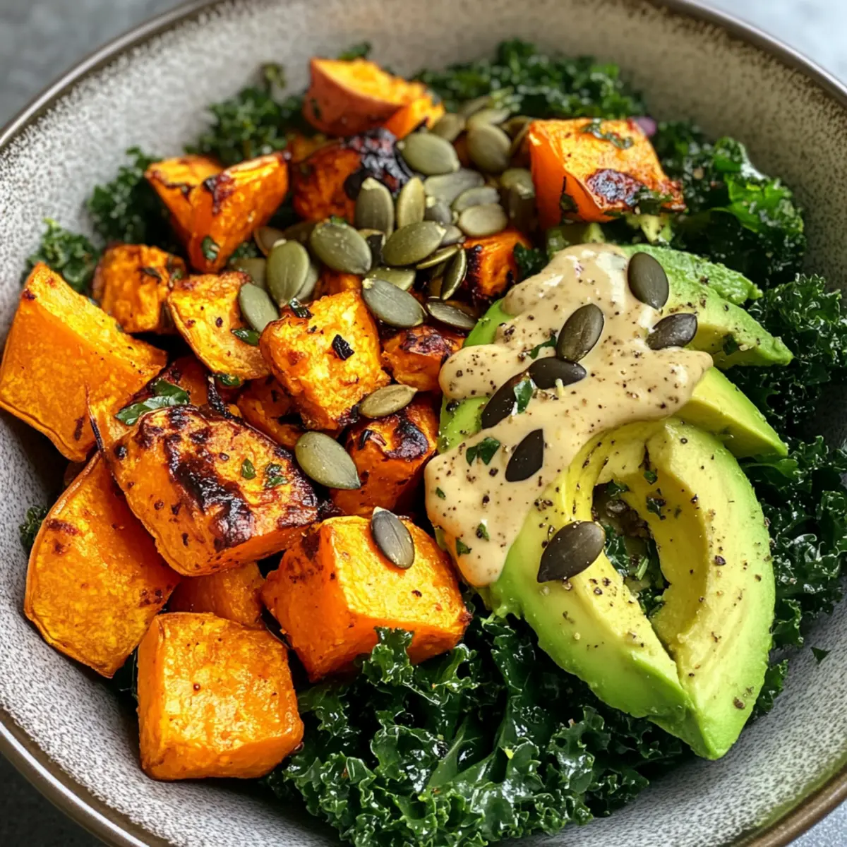 As the rich aroma of sweet potatoes roasting fills my kitchen, I can’t help but smile at the magic unfolding. This Harissa-Roasted Sweet Potato Power Salad is more than just food; it’s a vibrant celebration of flavor and nutrition. Packed with hearty quinoa and fresh kale, this vegan and gluten-free dish is designed for anyone seeking a fulfilling meal that won’t weigh them down. With its quick prep time and make-ahead potential, it’s perfect for those busy weekdays when you still want something wholesome and delicious. The creamy tahini dressing ties everything together, leaving you craving another bite. Are you ready to transform your salad game? Let’s dive into this nourishing delight!