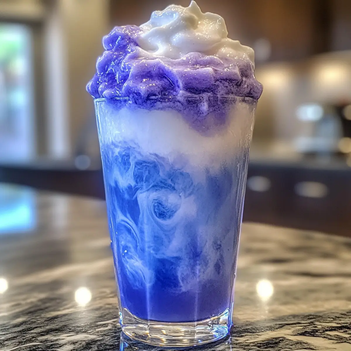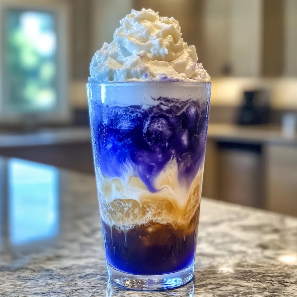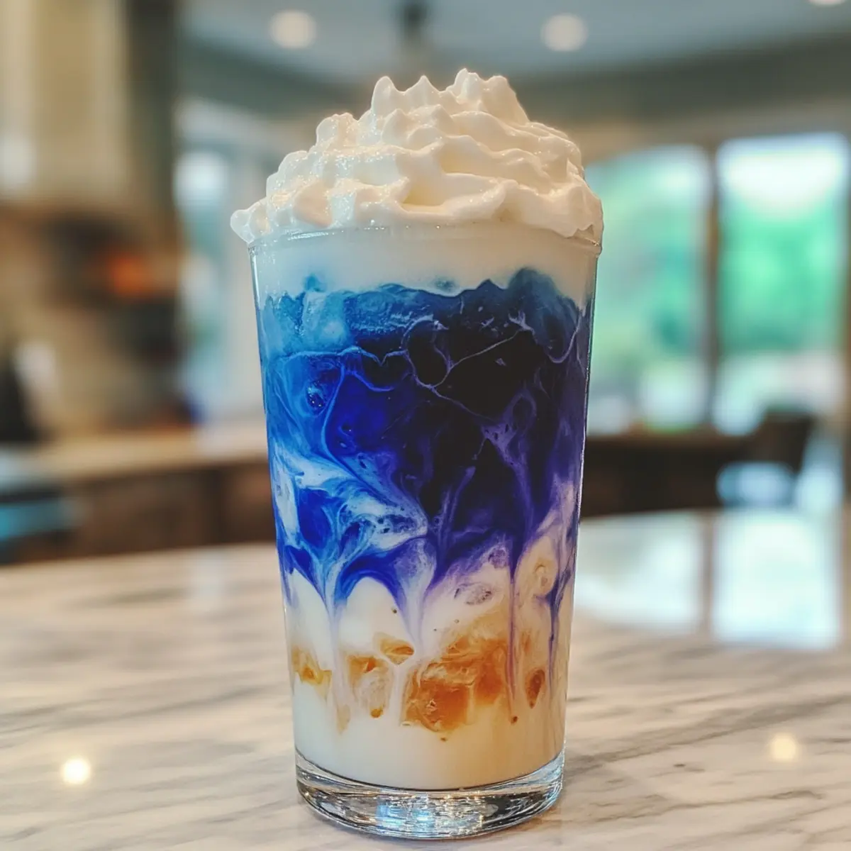 Delightful Iced Blue Tea Latte with Sweet Vanilla Foam