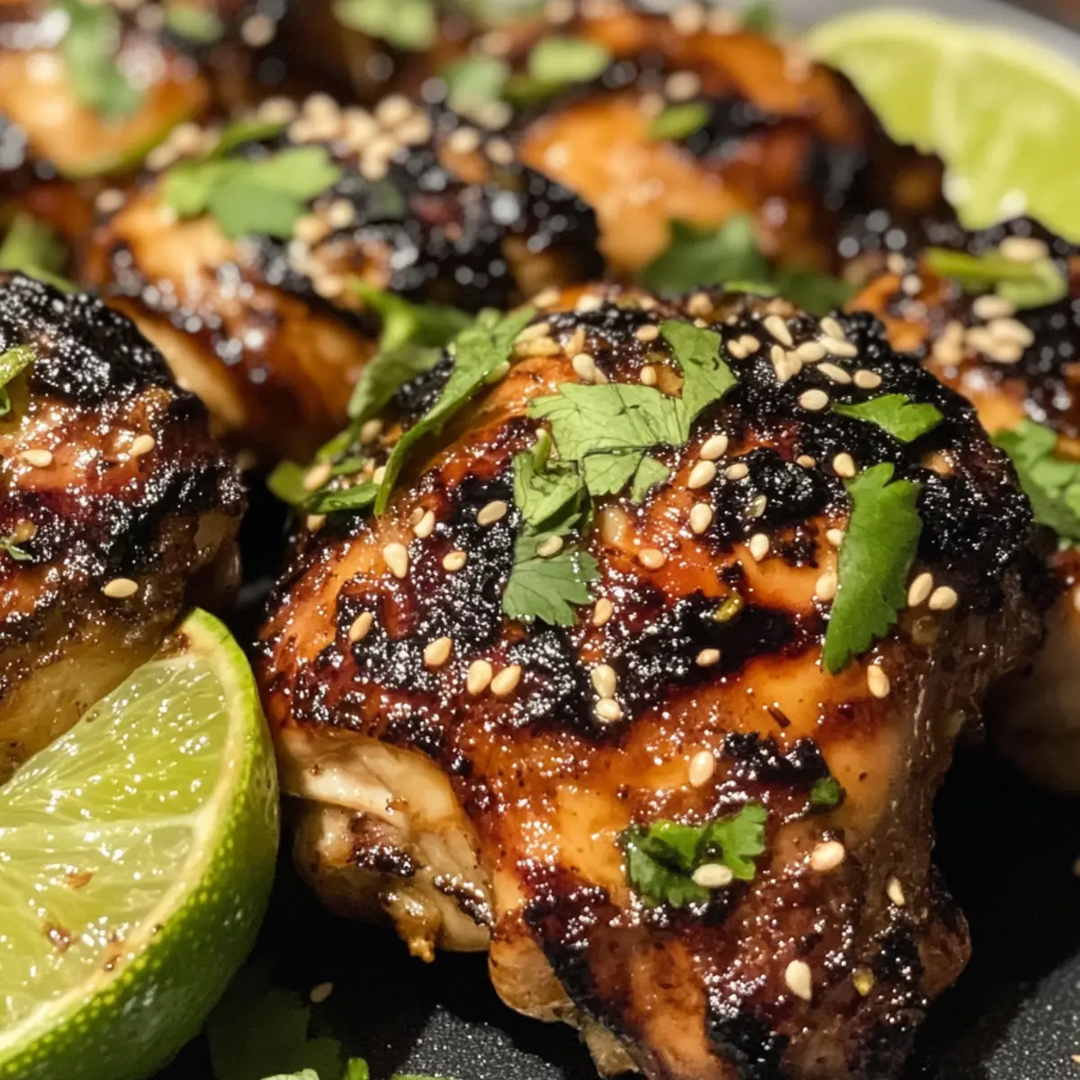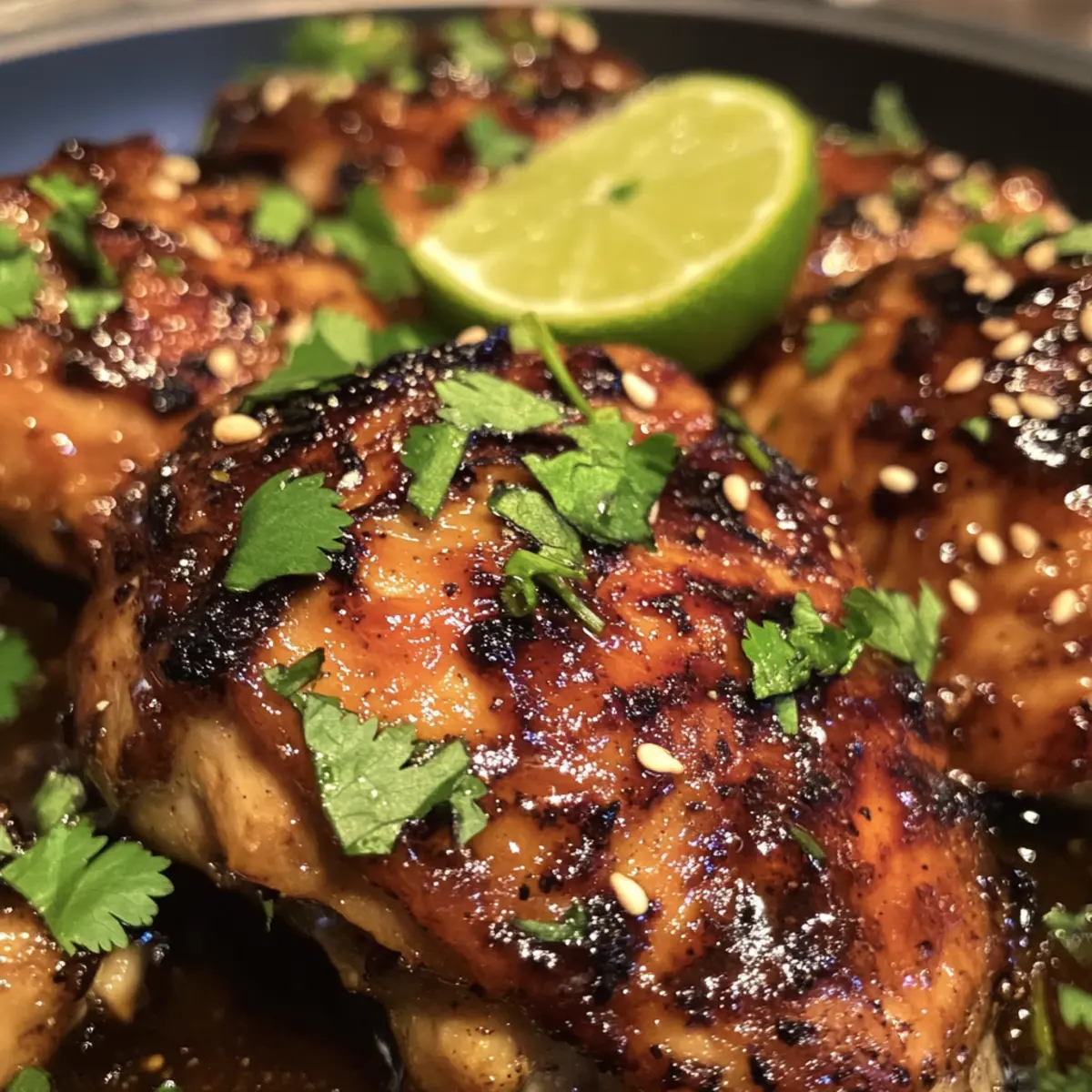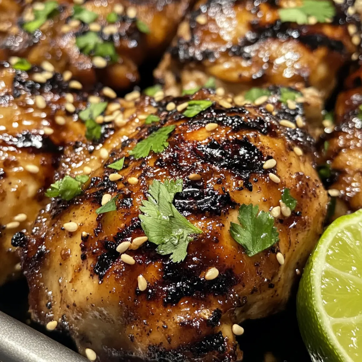 - Garnish the cooked chicken with chopped cilantro and toasted sesame seeds before serving.