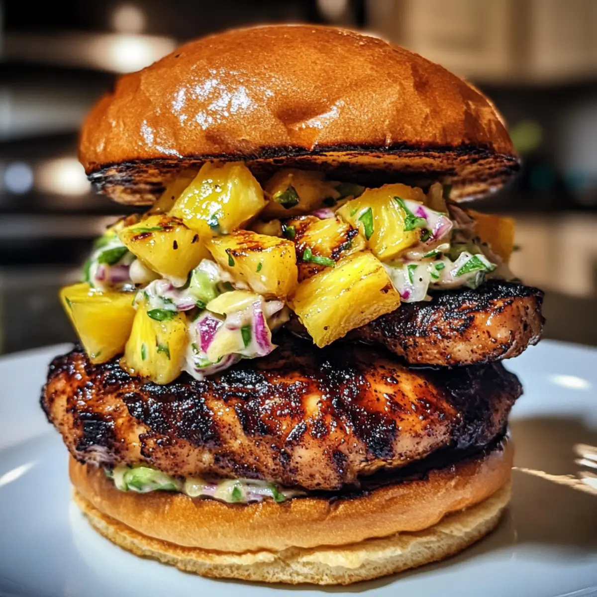 Delicious Jerk Chicken Sandwich with Grilled Pineapple and Coleslaw