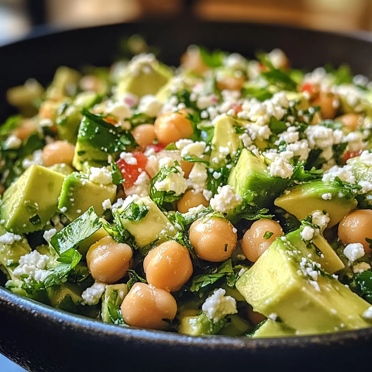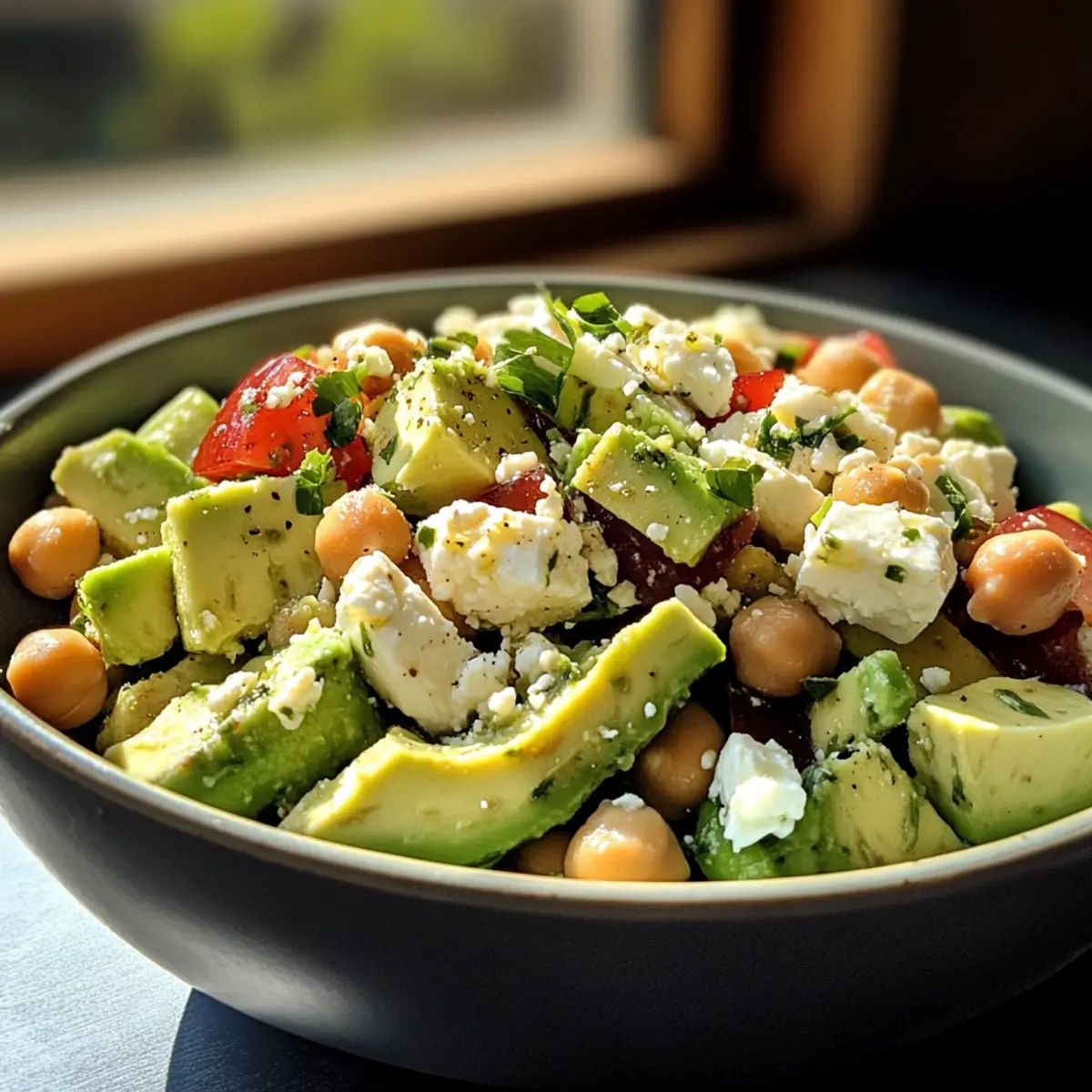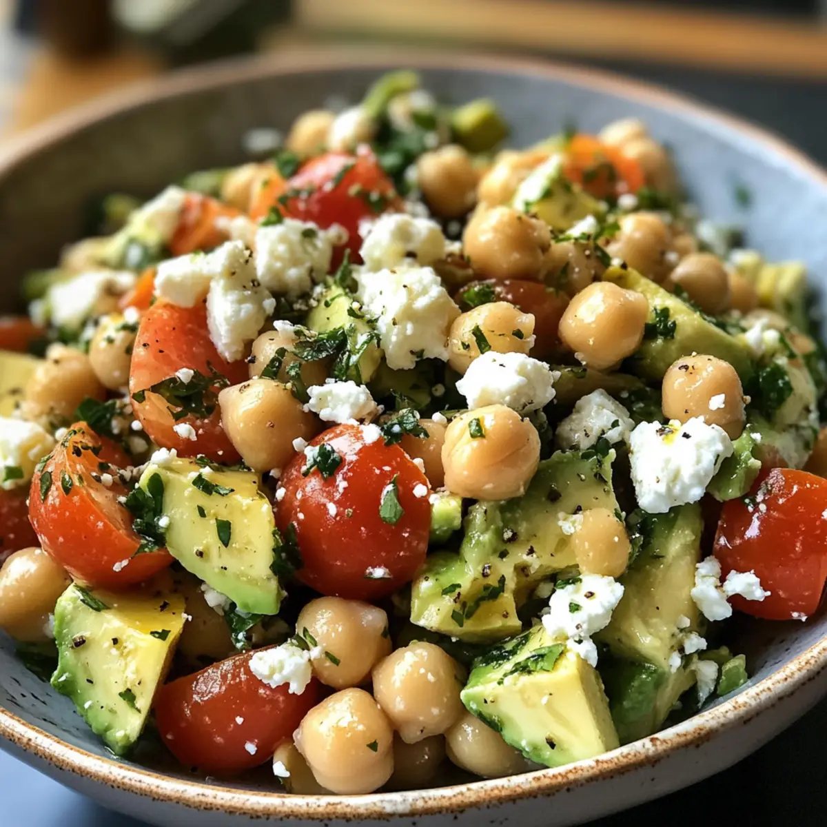 Vibrant Flavors: Experience a delightful medley of flavors with creamy avocados, tangy feta, and hearty chickpeas.