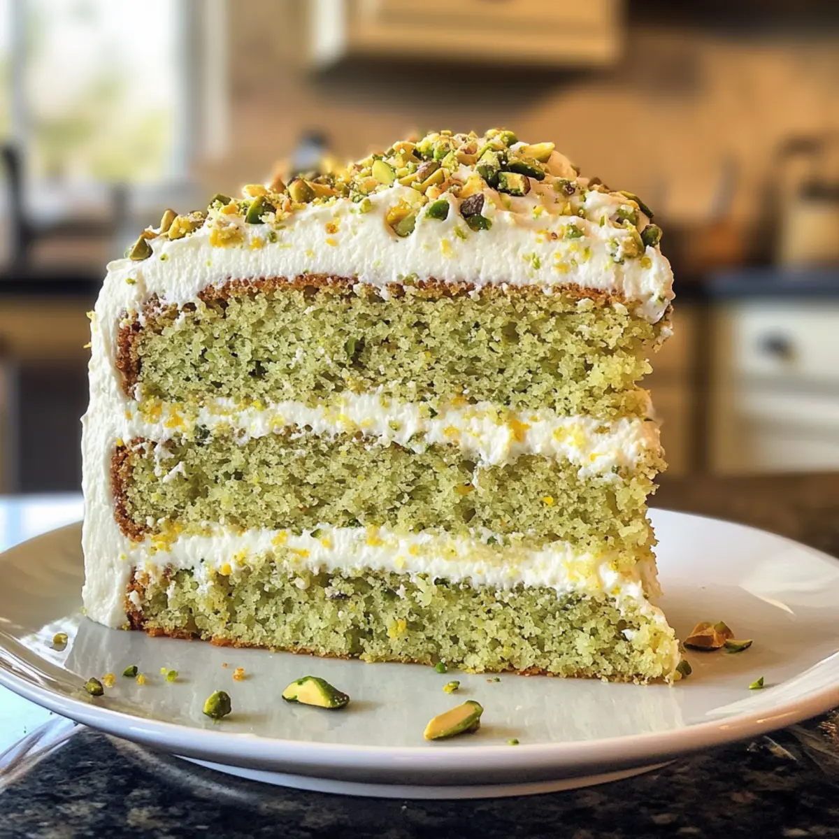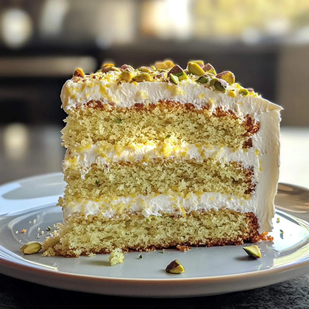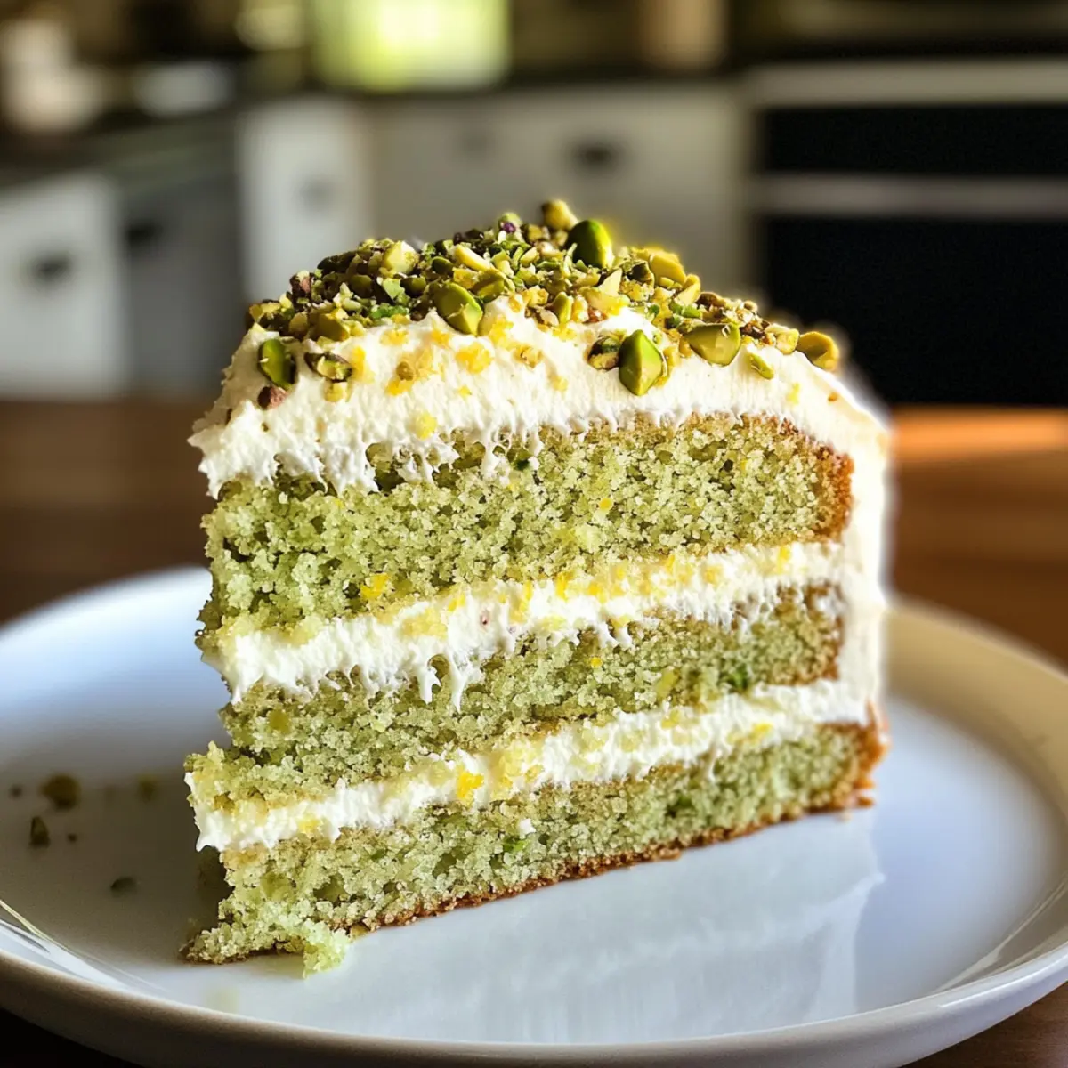 Lemon Pistachio Cake with Mascarpone Frosting Bliss