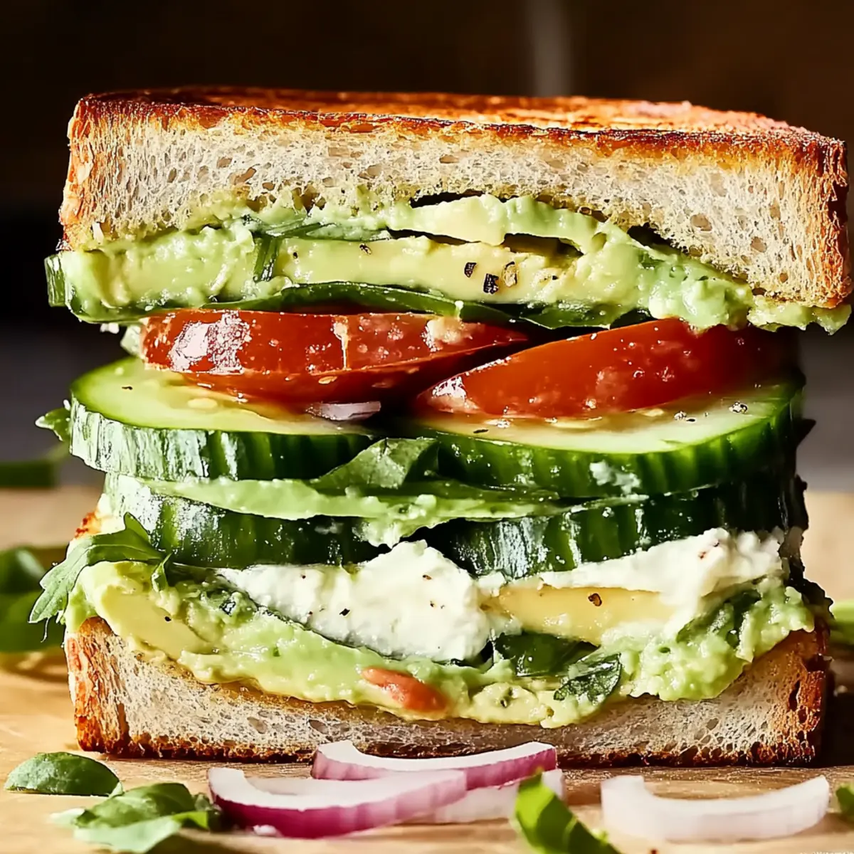 Vibrant and Fresh: The combination of bright greens, creamy avocado, and crisp cucumbers makes this sandwich a feast for both the eyes and taste buds.