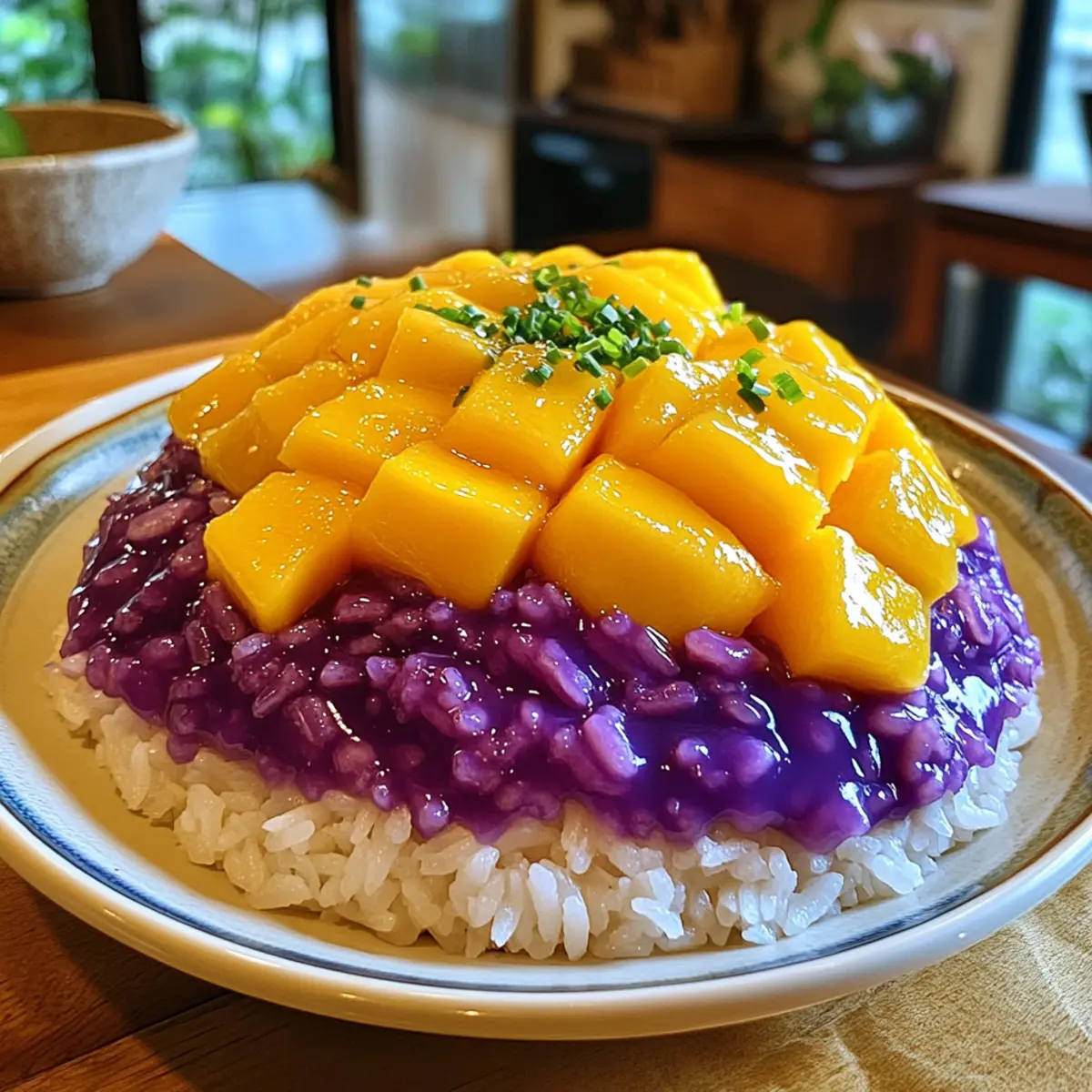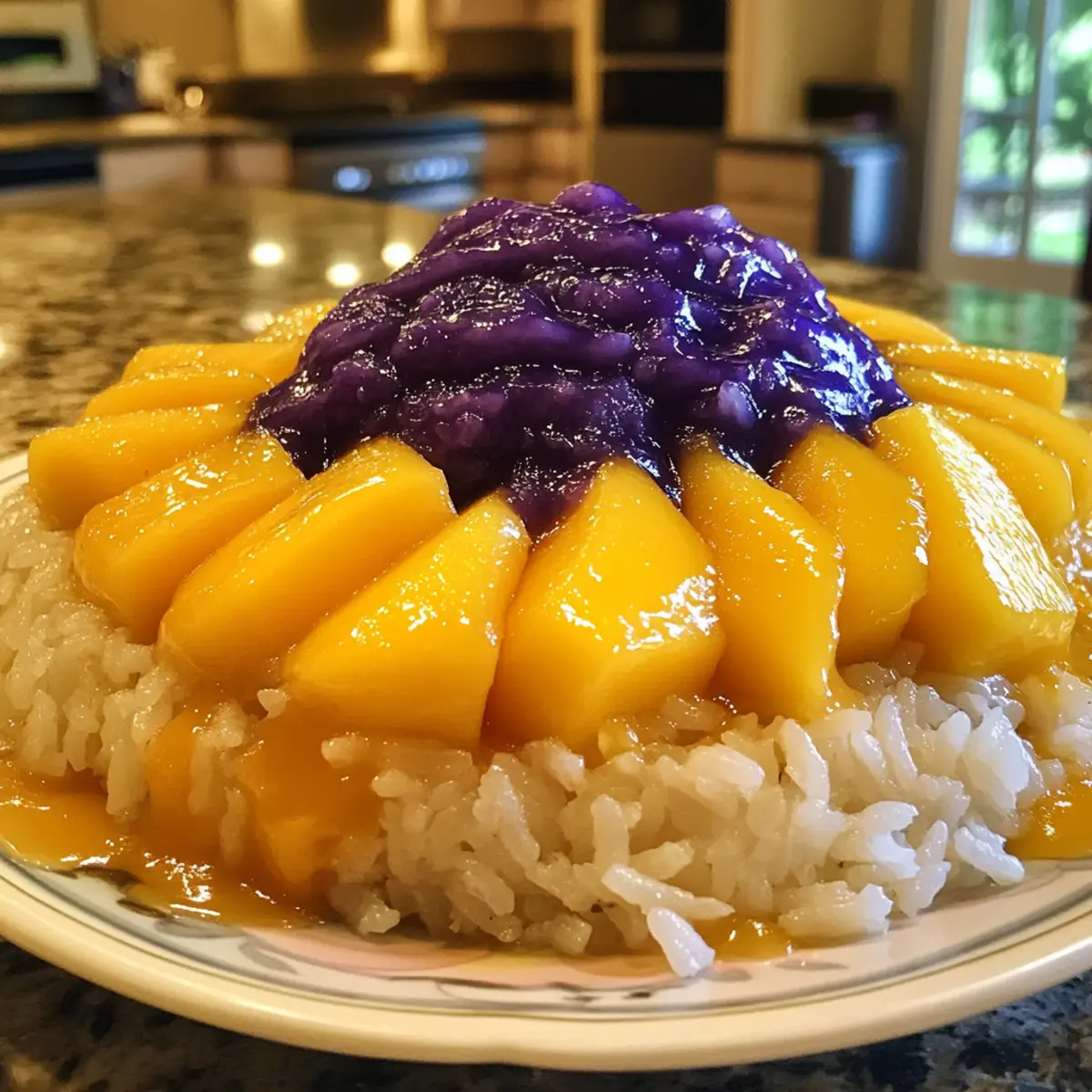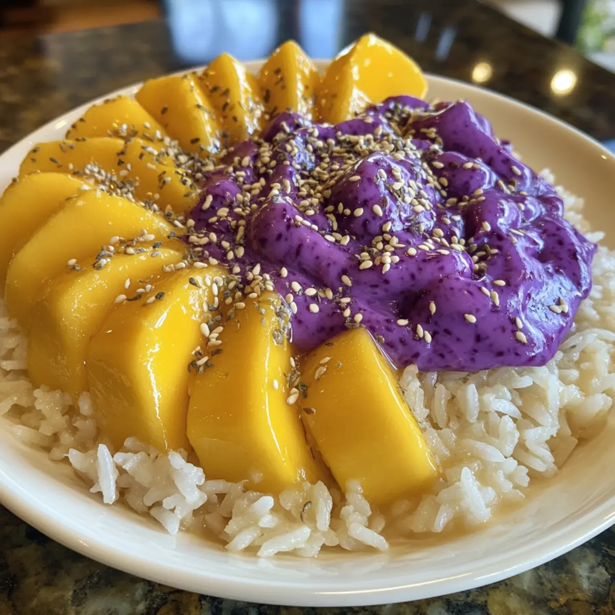Mango Sticky Rice Delight with a Twist of Ube Magic