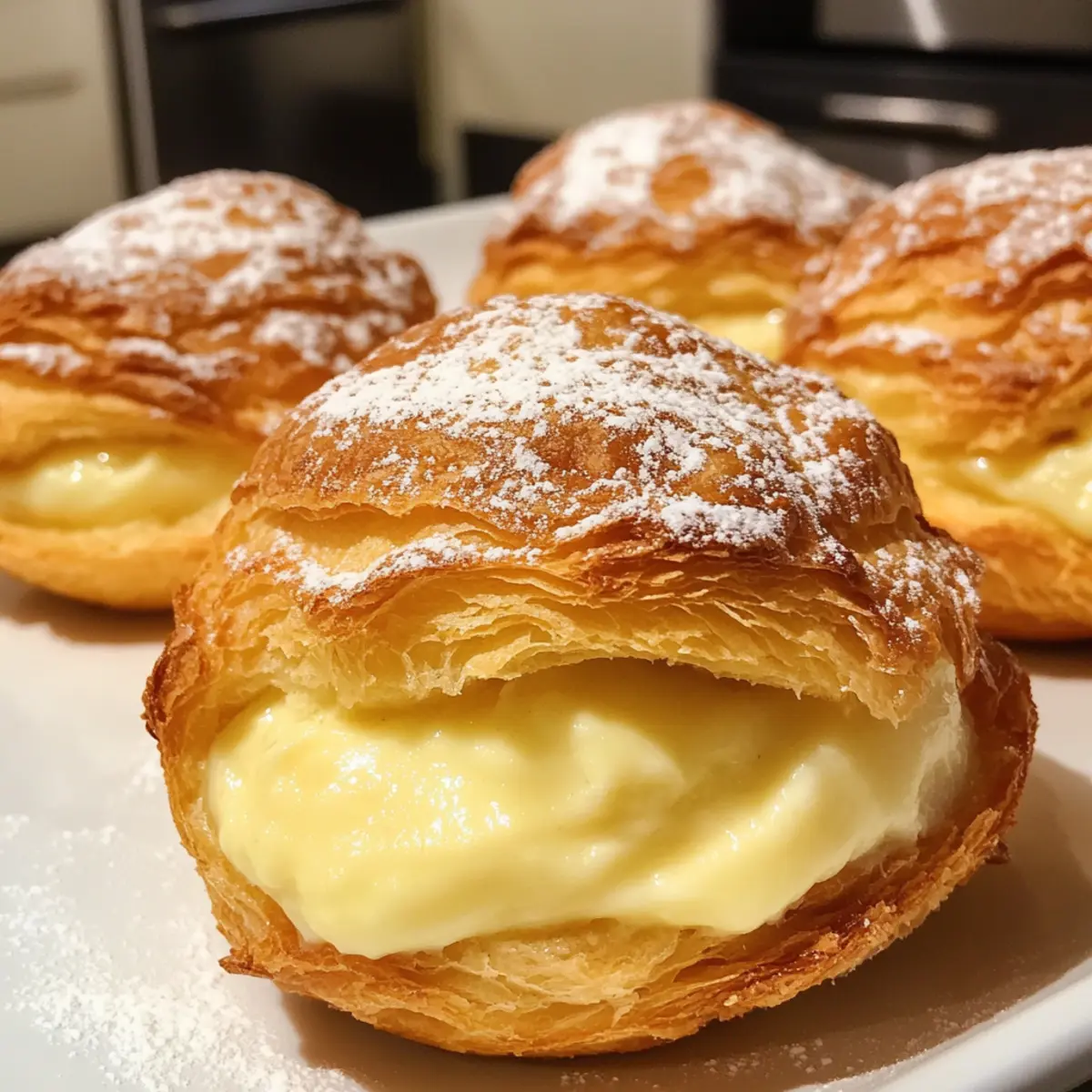 - Slice cooled puffs in half, fill with custard, and optionally top with whipped cream and powdered sugar.