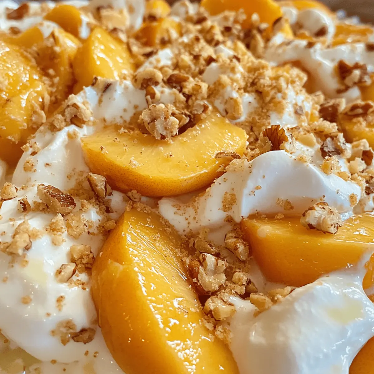 These Millionaire Peach Salad components are perfect for meal prep enthusiasts looking to save time! You can prepare the creamy dressing (whipped cream, cream cheese, honey, and vanilla) up to 24 hours in advance—simply refrigerate it in an airtight container to keep it fresh. Also, slice the peaches ahead of time and store them in a separate container with a splash of lemon juice to prevent browning for up to 3 days. When you’re ready to serve, just mix the peaches into the dressing and sprinkle on the graham cracker topping for crunch right before enjoying. This way, your Millionaire Peach Salad will be just as delicious, even with the prep work done ahead of time!