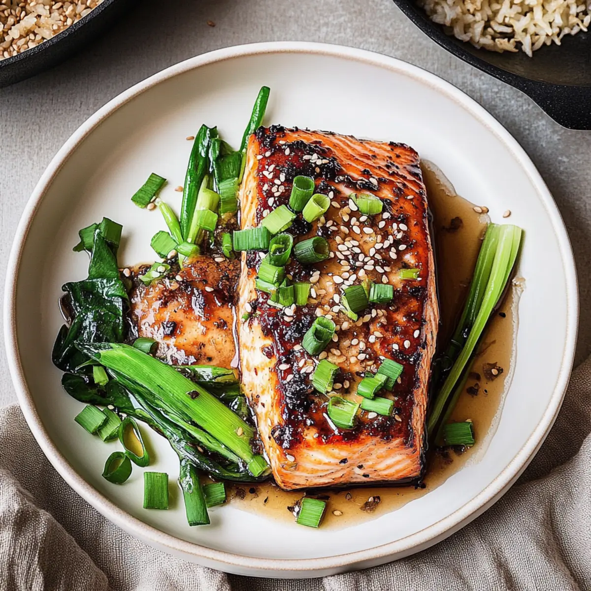 - Chilled Green Tea: A soothing drink that brings a gentle balance to the palate and enriches the Asian theme of the meal. Its subtle flavor refreshes between bites of savory salmon.