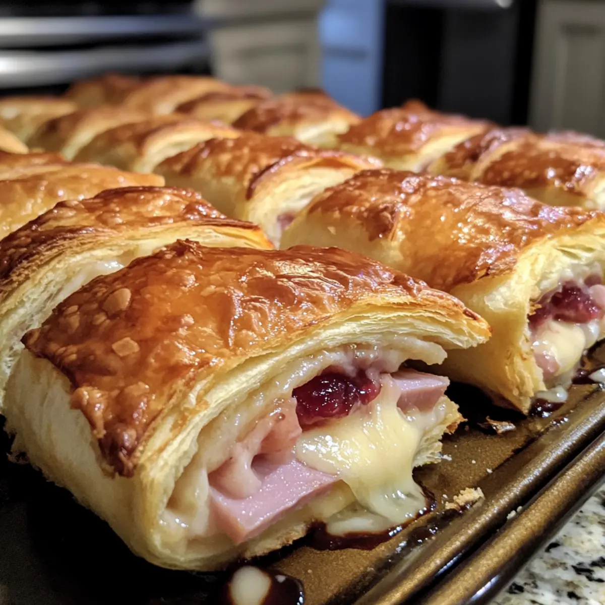 Oh no! If your Monte Cristo Roll-Ups are leaking, it’s likely due to overfilling. Next time, stick to about 1 teaspoon of raspberry preserves and 1-2 slices of ham. Also, ensure the seams are pinched tightly together before baking to create a better seal. A golden brown color on the outsides will indicate they’re done!
