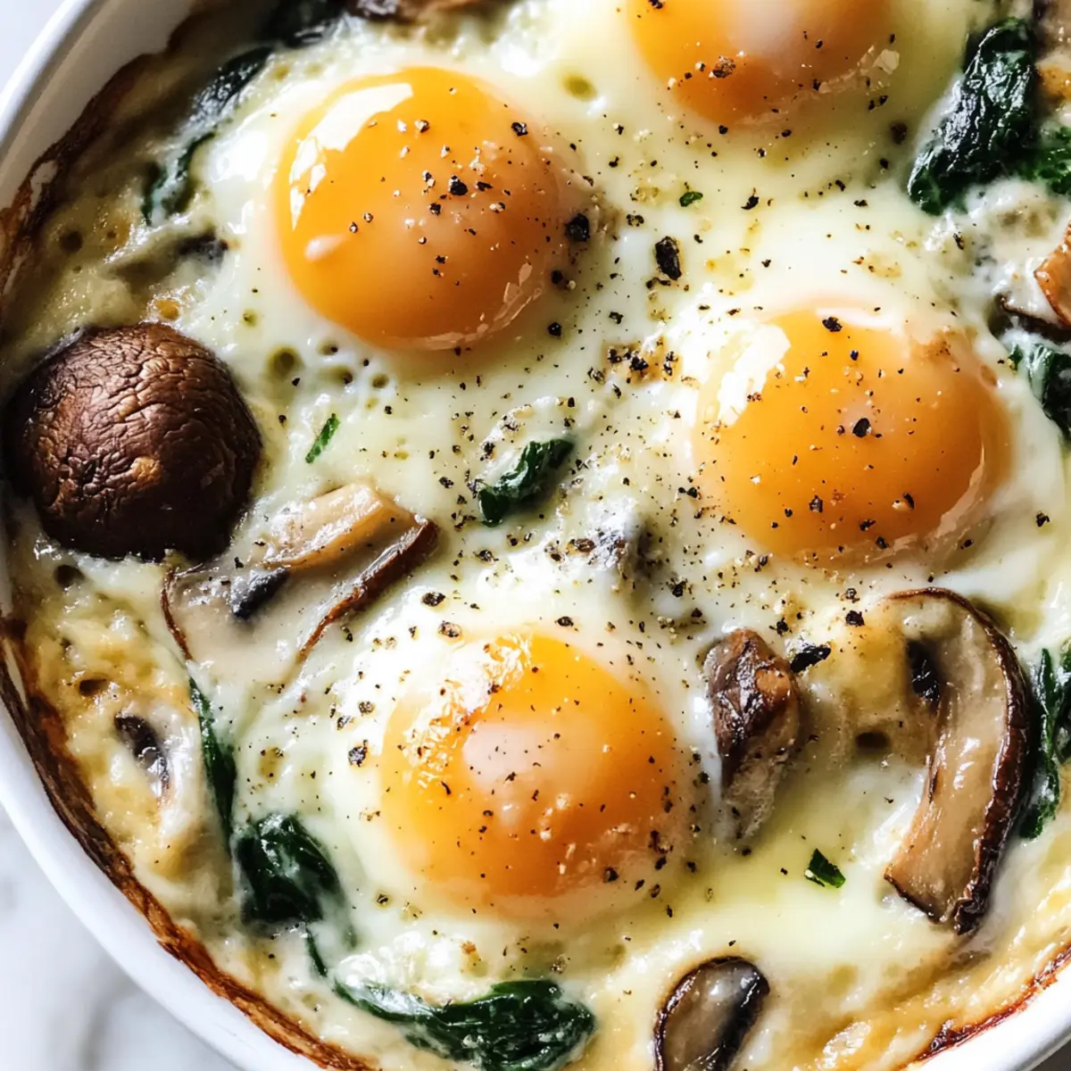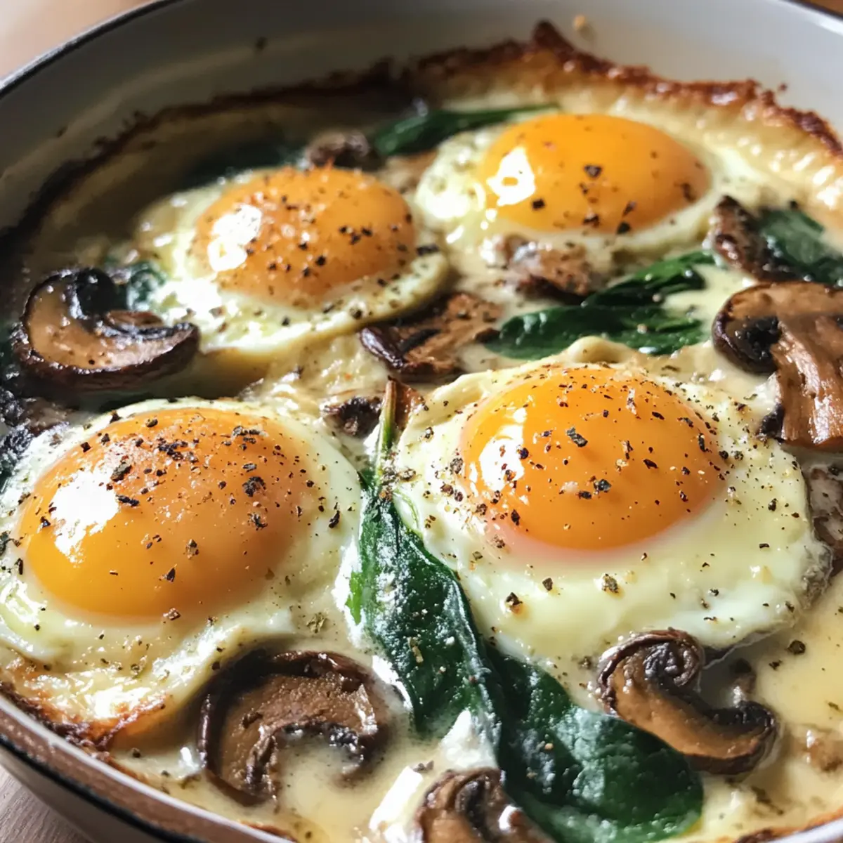 Creamy, Decadent Delight: The velvety cheese combined with earthy mushrooms creates a rich, indulgent sauce that perfectly envelops the baked eggs.