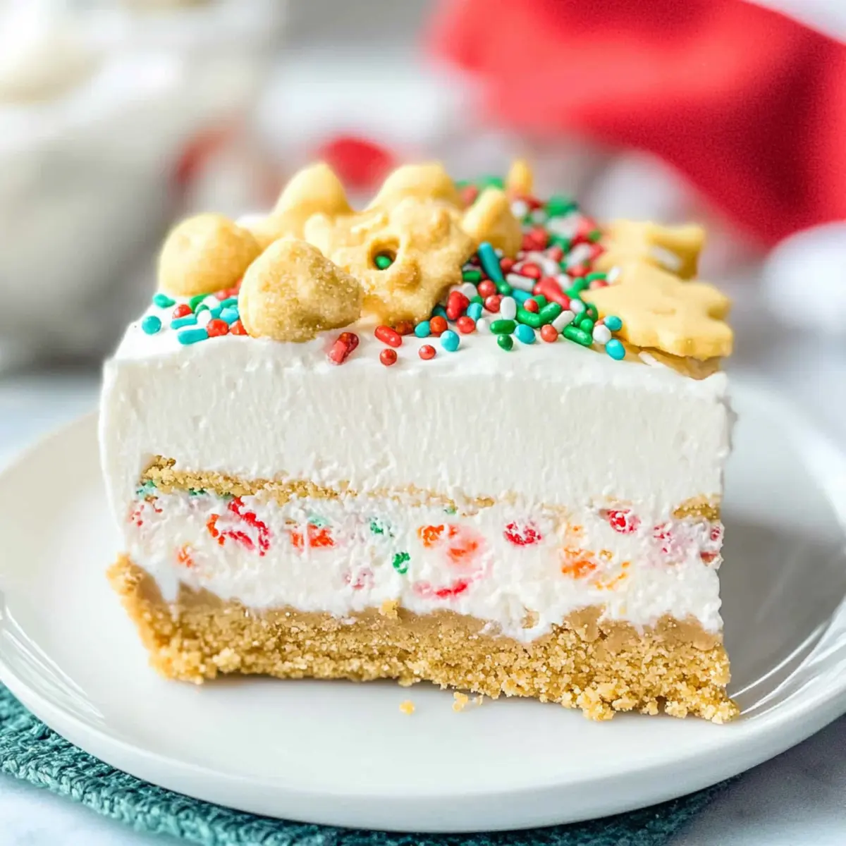 Vibrant Presentation: Adorned with colorful holiday sprinkles, it’s not just delicious but also a stunning centerpiece that will wow your guests.