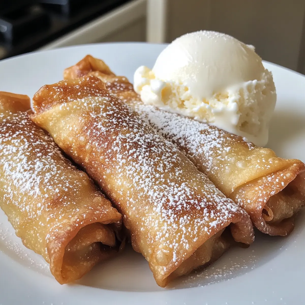 - Vanilla Ice Cream (optional) – The perfect pairing to add creaminess to the warm egg rolls for a delectable dessert experience.