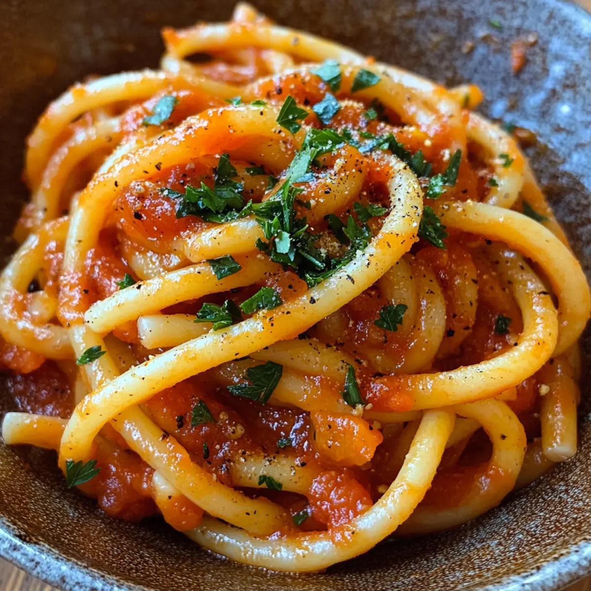 The aroma of garlic simmering gently can transform the entire kitchen, wrapping it in a warm, savory embrace. I often find myself reminiscing about my travels in Tuscany, where simple, rustic dishes like Pici all’Aglione brought joy to my meals. This delightful dish features thick, chewy pici pasta coated in a sweet garlic tomato sauce, making it an unforgettable dinner experience. What I adore about making Pici all’Aglione is that it comes together in just 40 minutes—perfect for busy weeknights when I crave something homemade yet uncomplicated. As a vegetarian option, it’s not only a satisfying comfort food but also a canvas for your favorite seasonings. Whether you’re looking to impress family or simply want to enjoy a moment of culinary bliss, this dish has got you covered. What will you might add to make it your own?