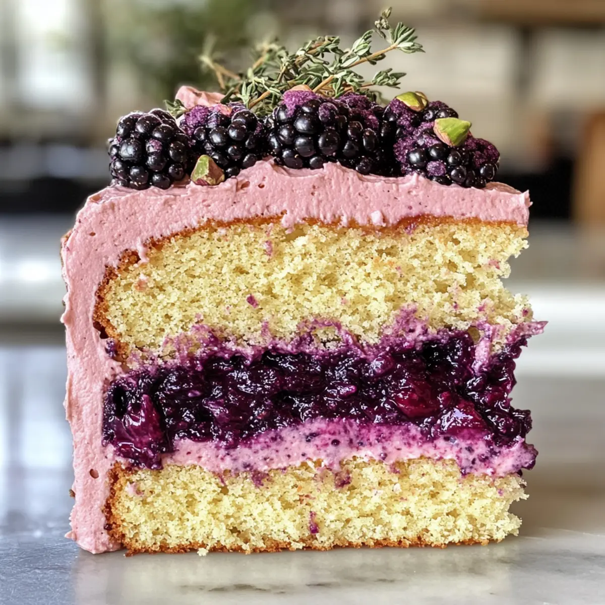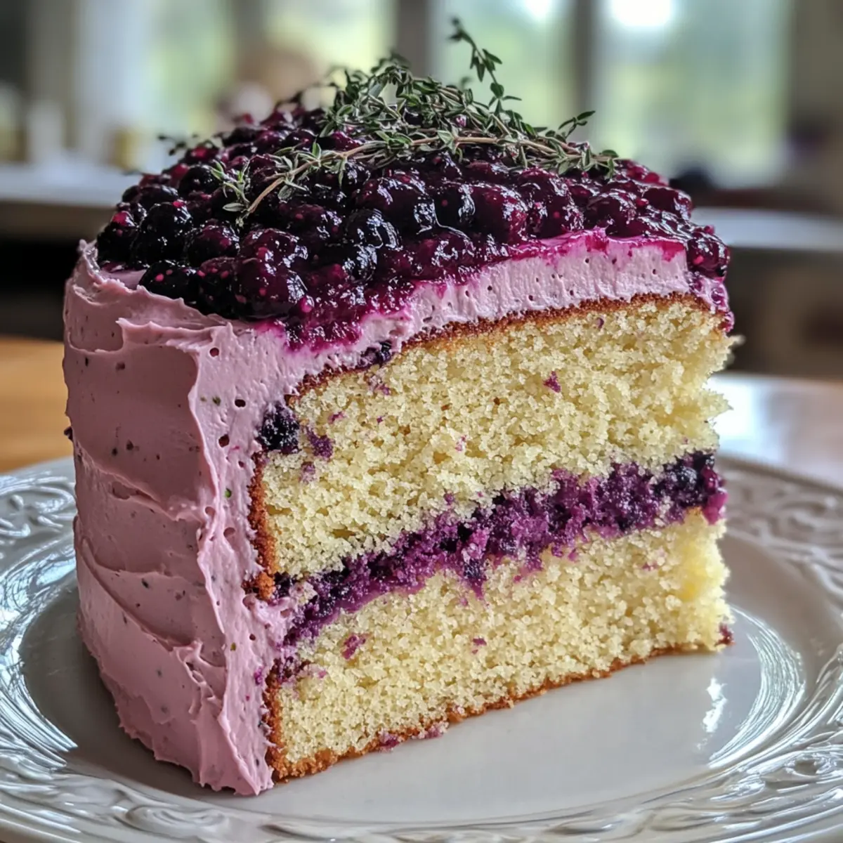 To make the frosting, beat softened butter in a bowl until fluffy, about 2-3 minutes. Gradually add blackberry preserves, powdered sugar, vanilla extract, salt, and dried thyme. Mix on low until combined, then increase the speed to whip until light and airy. This luscious frosting is the perfect complement to your cake.