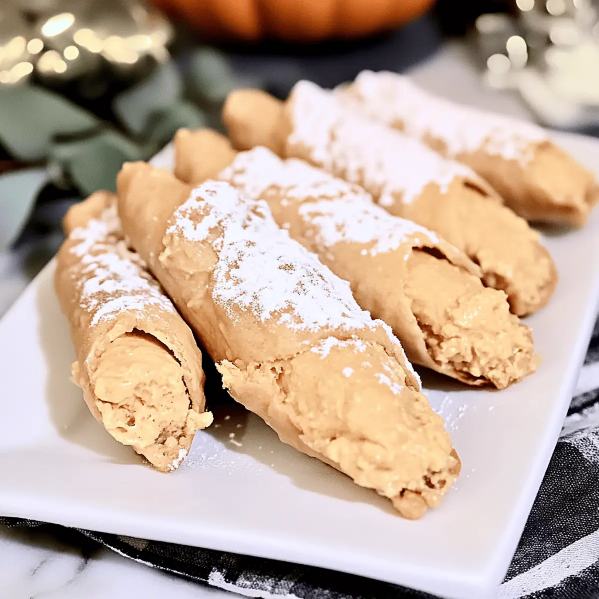 Before serving, dust the filled pumpkin cannoli with powdered sugar for a sweet touch. Plate them beautifully and enjoy immediately to savor that delightful crunch from the shells paired with the luscious filling. These no bake pumpkin cannoli are best enjoyed fresh for an unforgettable autumn dessert experience!