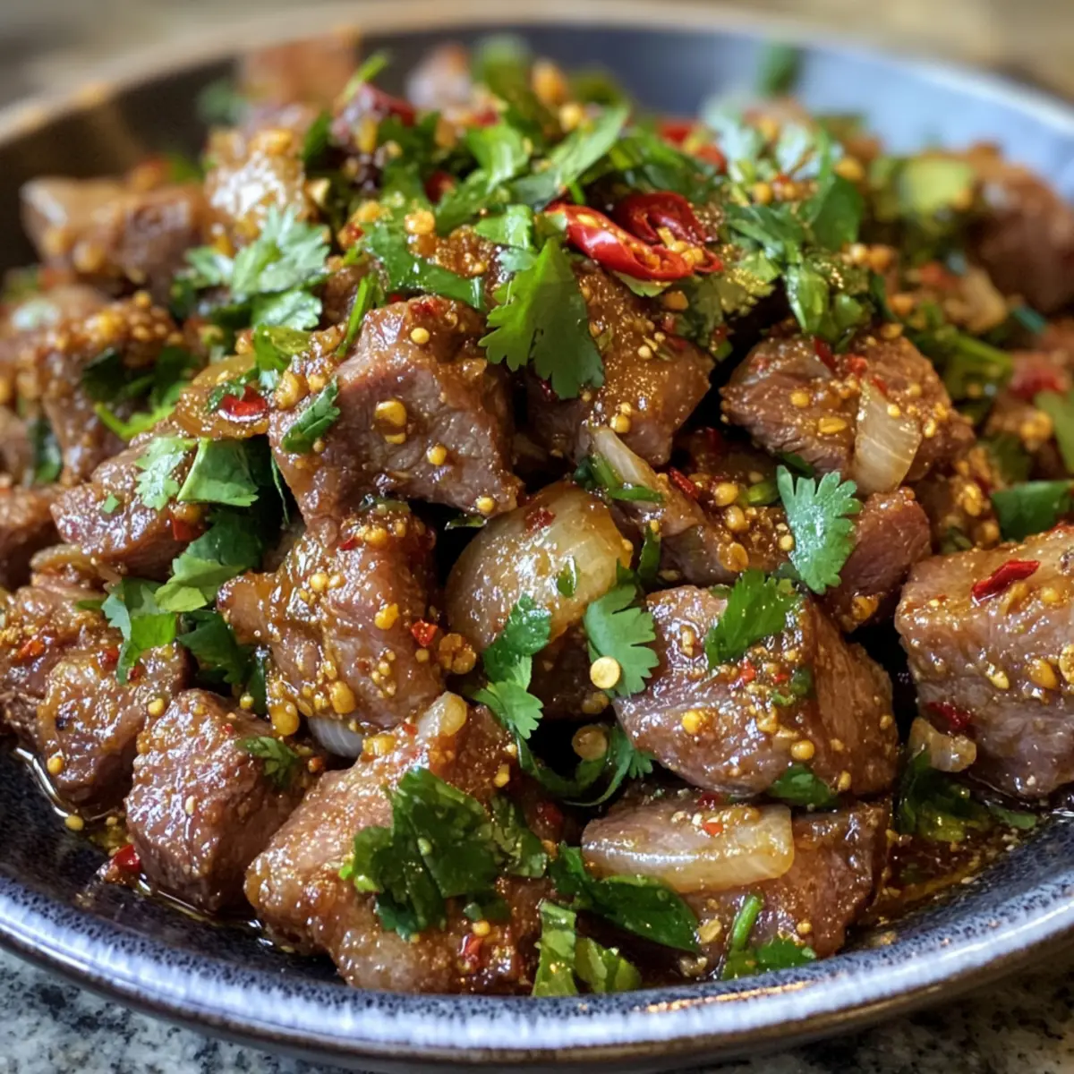 Finally, add chopped cilantro to the skillet and give it a gentle stir, just enough to combine. This adds a fresh, vibrant touch to your dish. Serve your Real-Deal Xinjiang Cumin Lamb hot, accompanied by steamed rice or flatbreads, perfect for soaking up those irresistible flavors.