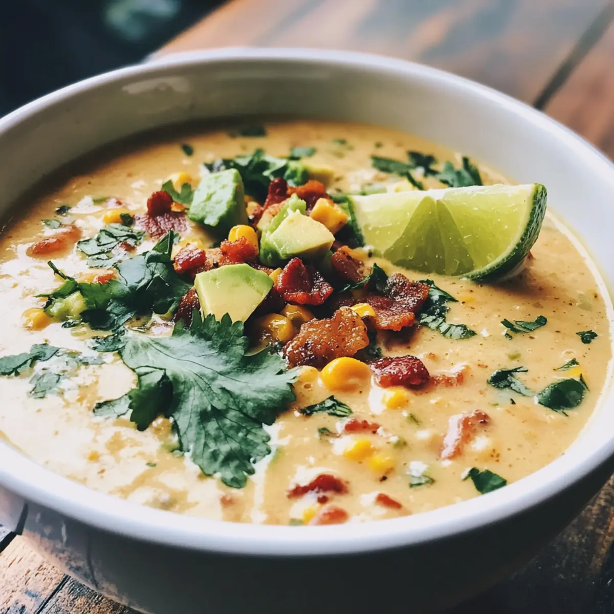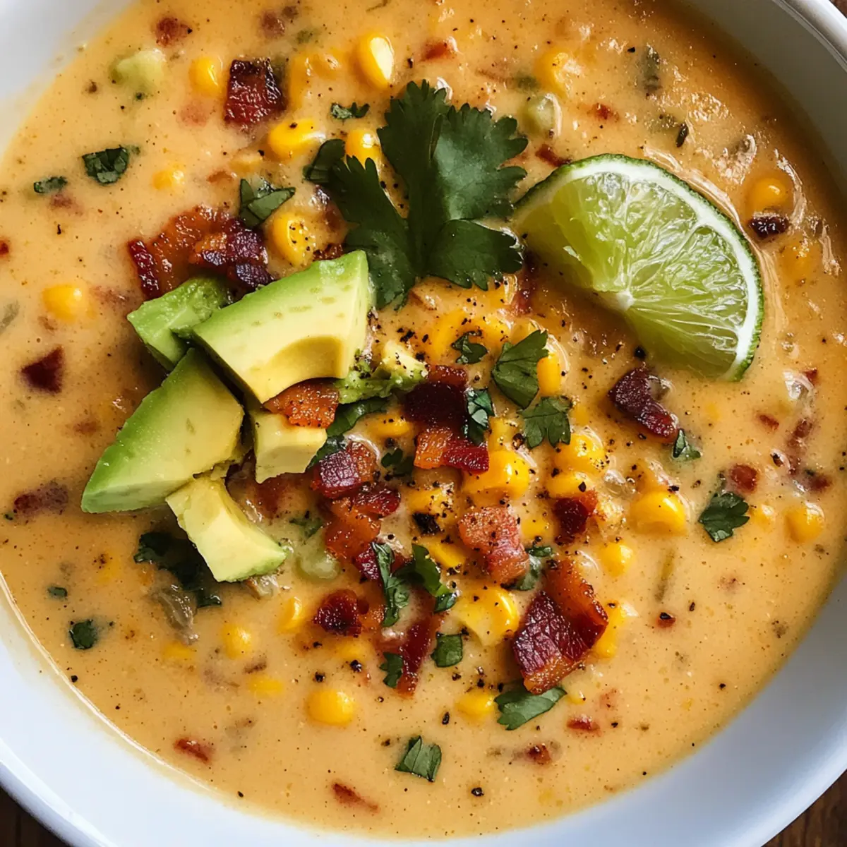 - Ladle chowder into bowls and garnish with crispy bacon, chopped cilantro, diced avocado, and a squeeze of lime juice.