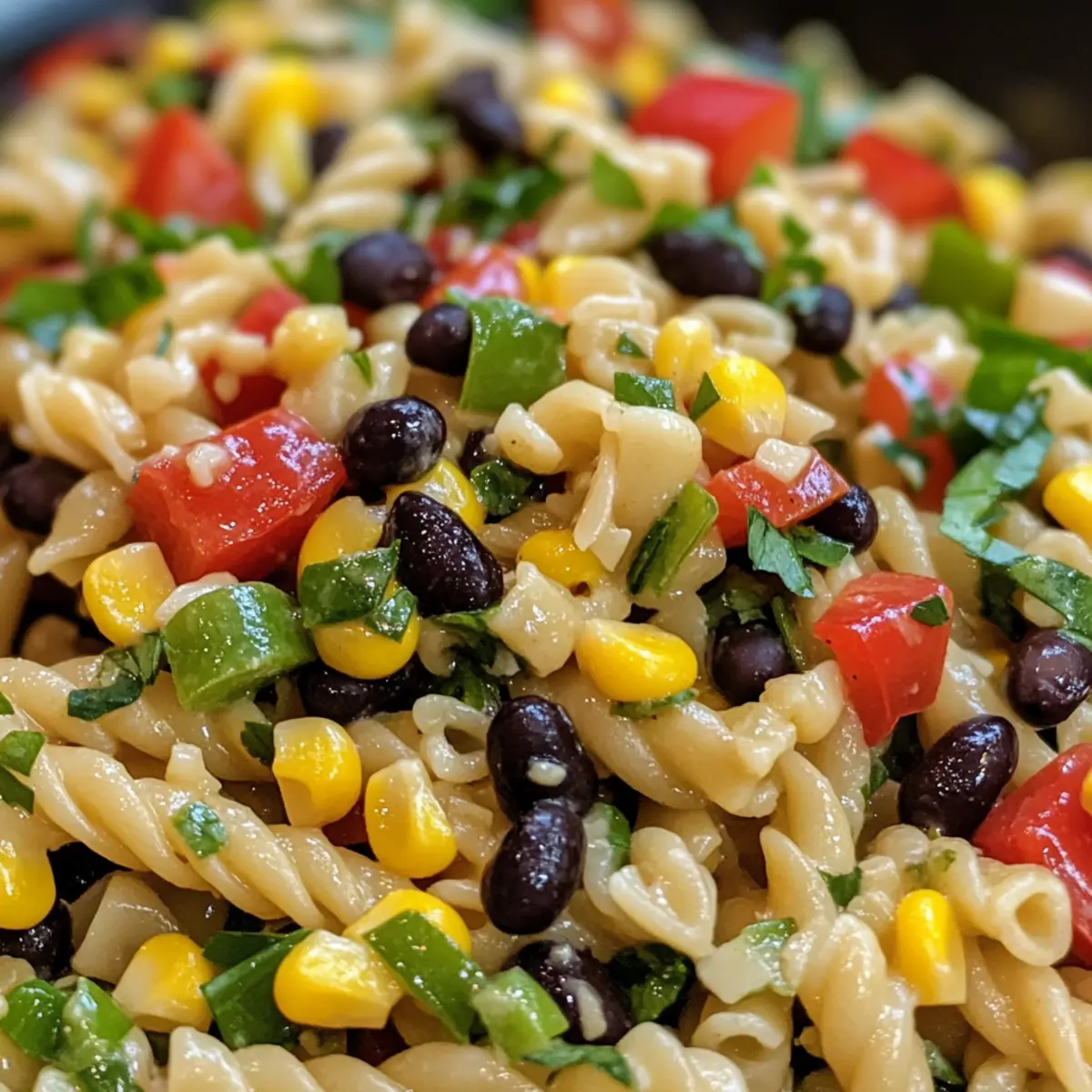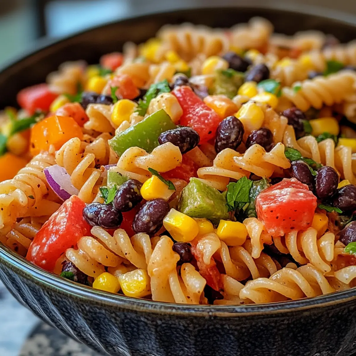 Vibrant Flavors: This Southwest Pasta Salad brings a fresh zing with its spicy garlic dressing, making every mouthful an adventure.