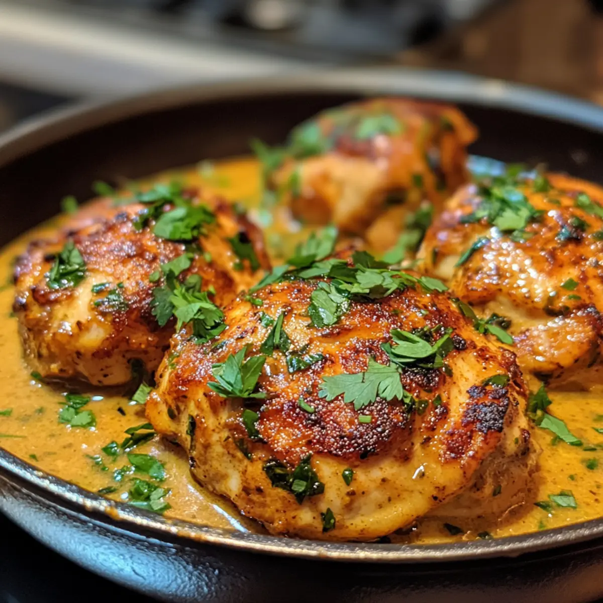 - Return the chicken to the skillet, including any juices from the plate. Simmer on low heat for an additional 5 minutes. Garnish with chopped parsley or cilantro before serving.
