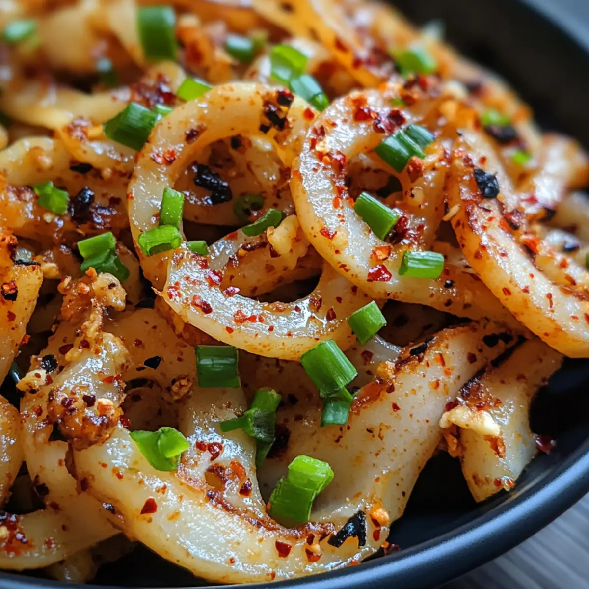 - Transfer to a serving dish, garnish with green onions and optional red pepper flakes, and serve warm.