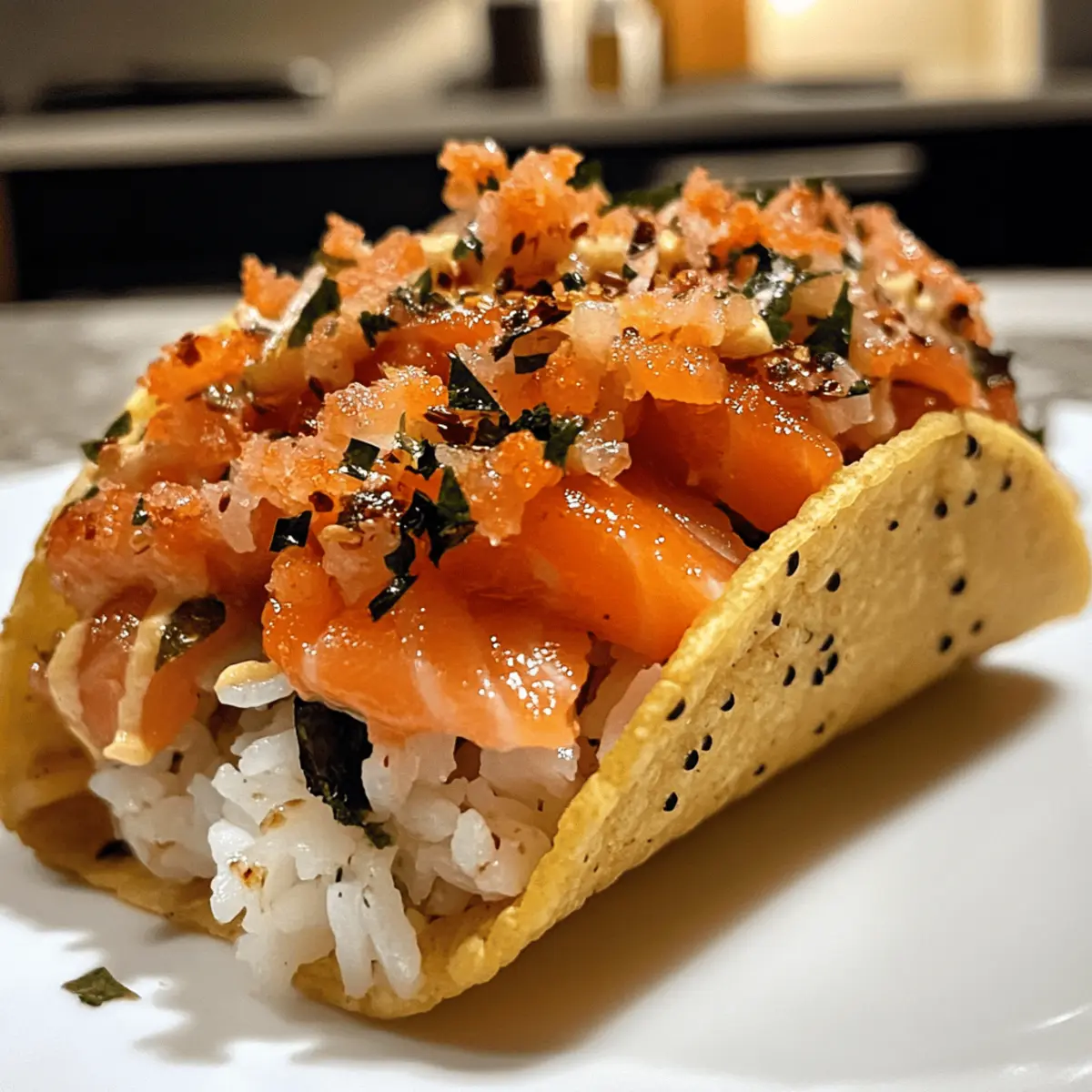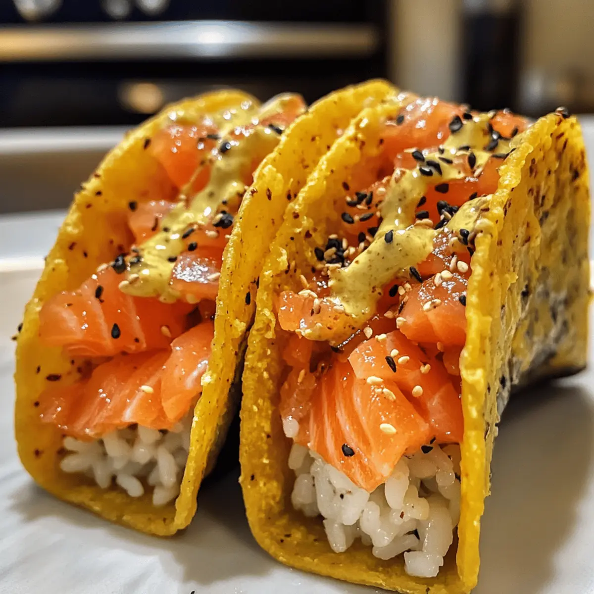 Very good question! To keep leftover sushi tacos, wrap them in foil or store them in an airtight container for up to 2 days in the refrigerator. This method prevents sogginess while maintaining the freshness of the ingredients. When ready to enjoy, consider popping the taco shells in a warm oven for a few minutes to restore their crispiness.