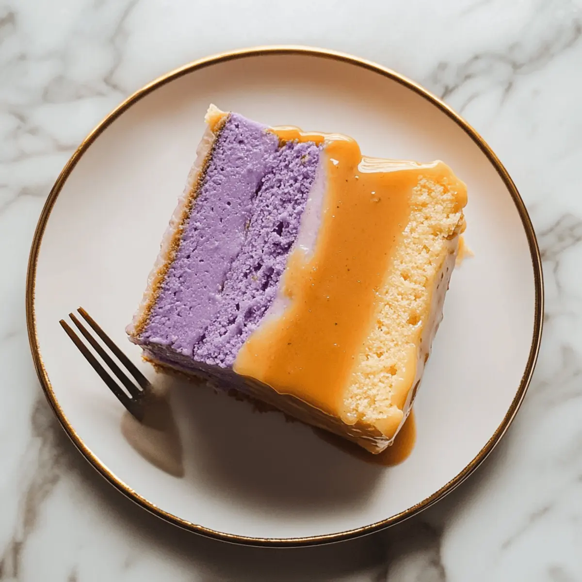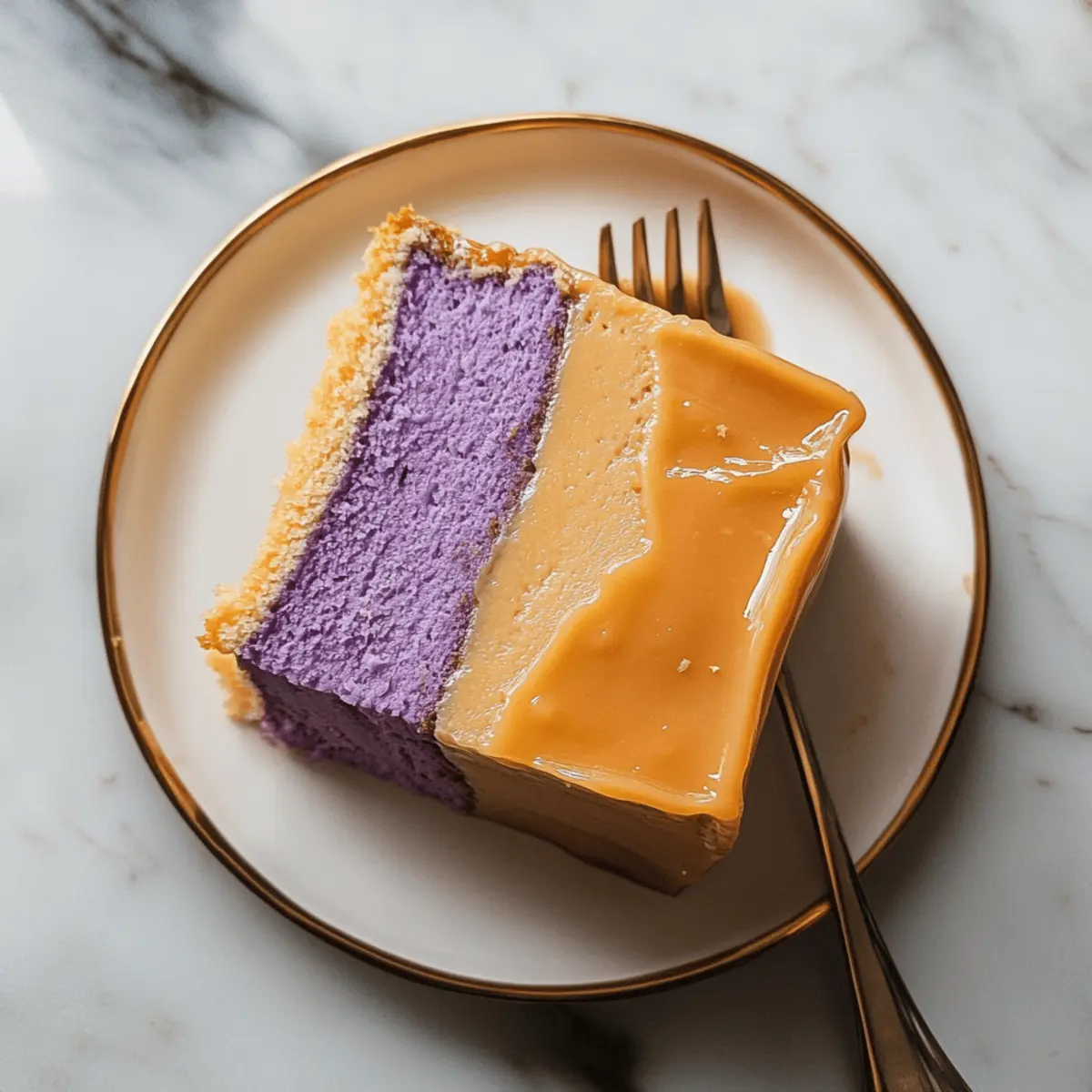 Astonishing Visuals: The Ube Leche Flan Layer Cake is not just a dessert; it’s a feast for the eyes with its stunning purple and golden layers.