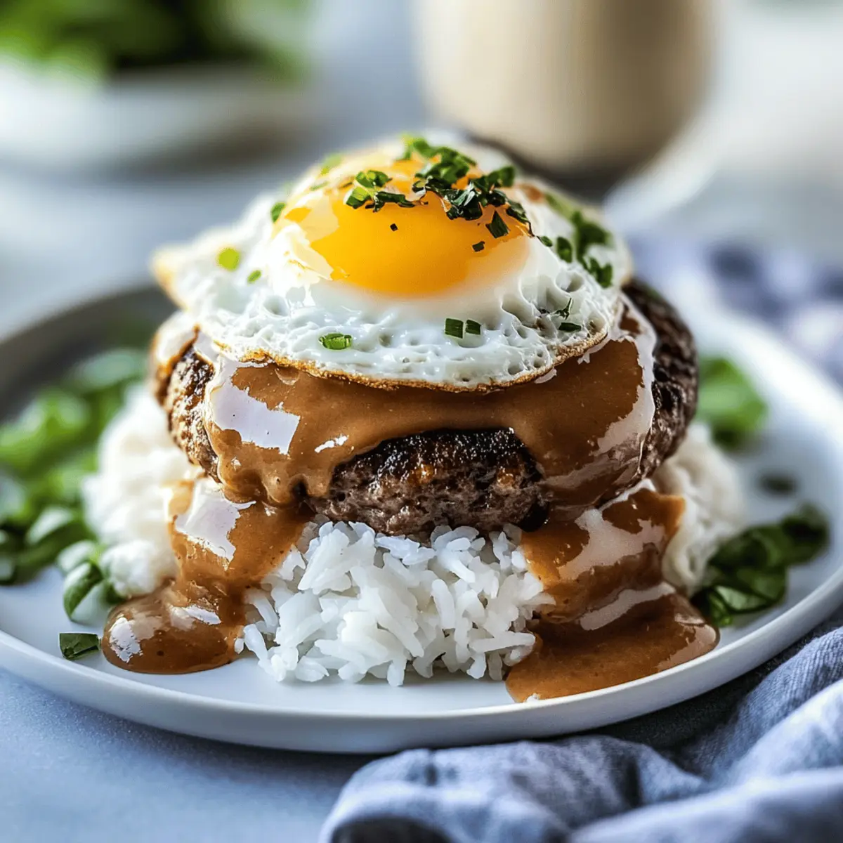 To plate, scoop a generous portion of fluffy rice onto a dish. Place one of the juicy burger patties on top of the rice, then drizzle a hearty amount of the velvety gravy over the patty. Finally, crown the dish with a beautifully cooked over-easy egg, letting the yolk slightly cascade over the entire combination, creating a mouthwatering Ultimate Hawaiian Loco Moco experience.
