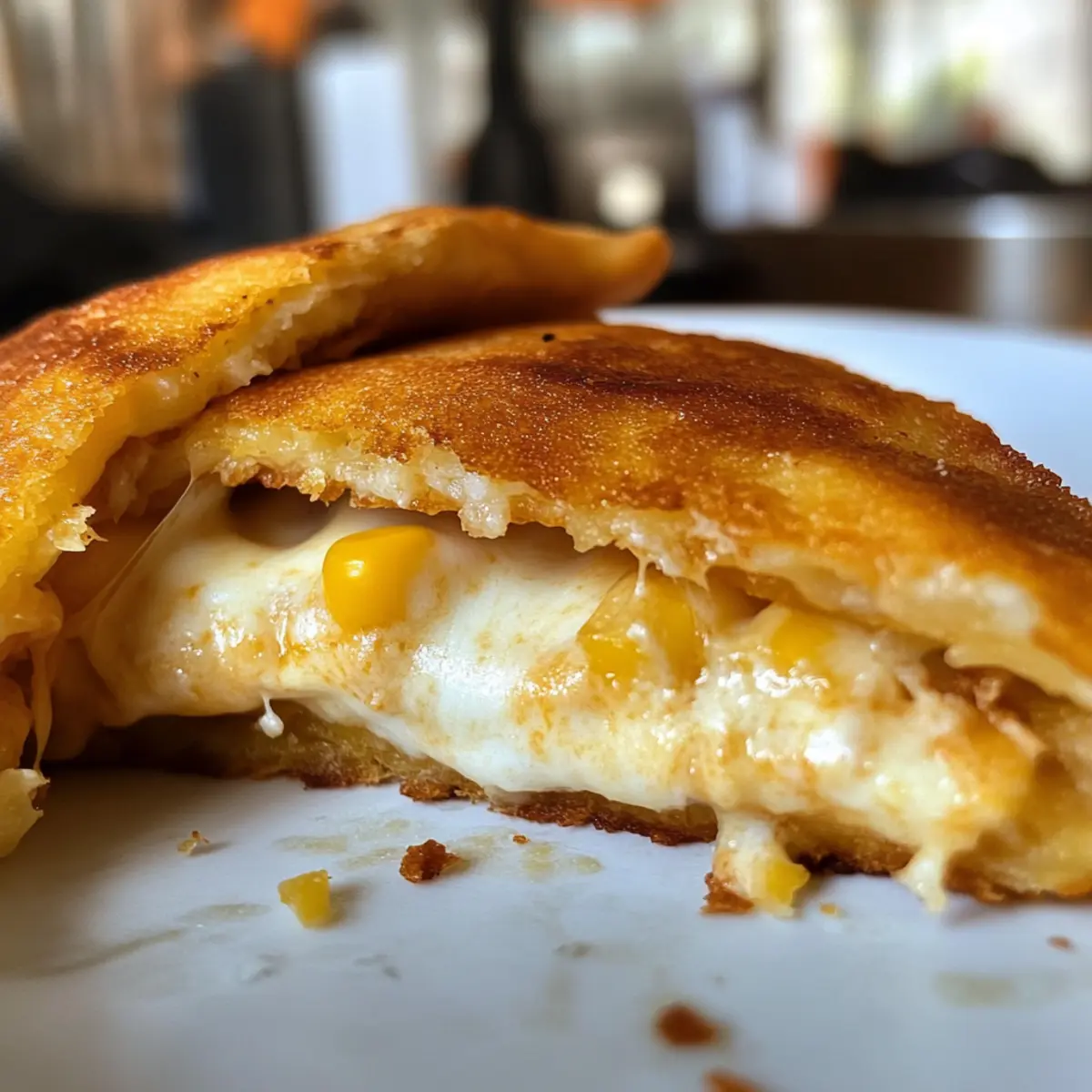 - Add the Cheese: Place a slice of buffalo mozzarella in the center of each cachapa, fold in half, and let melt for 1-2 minutes.