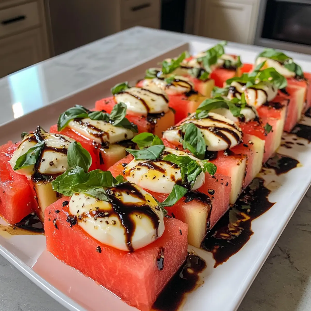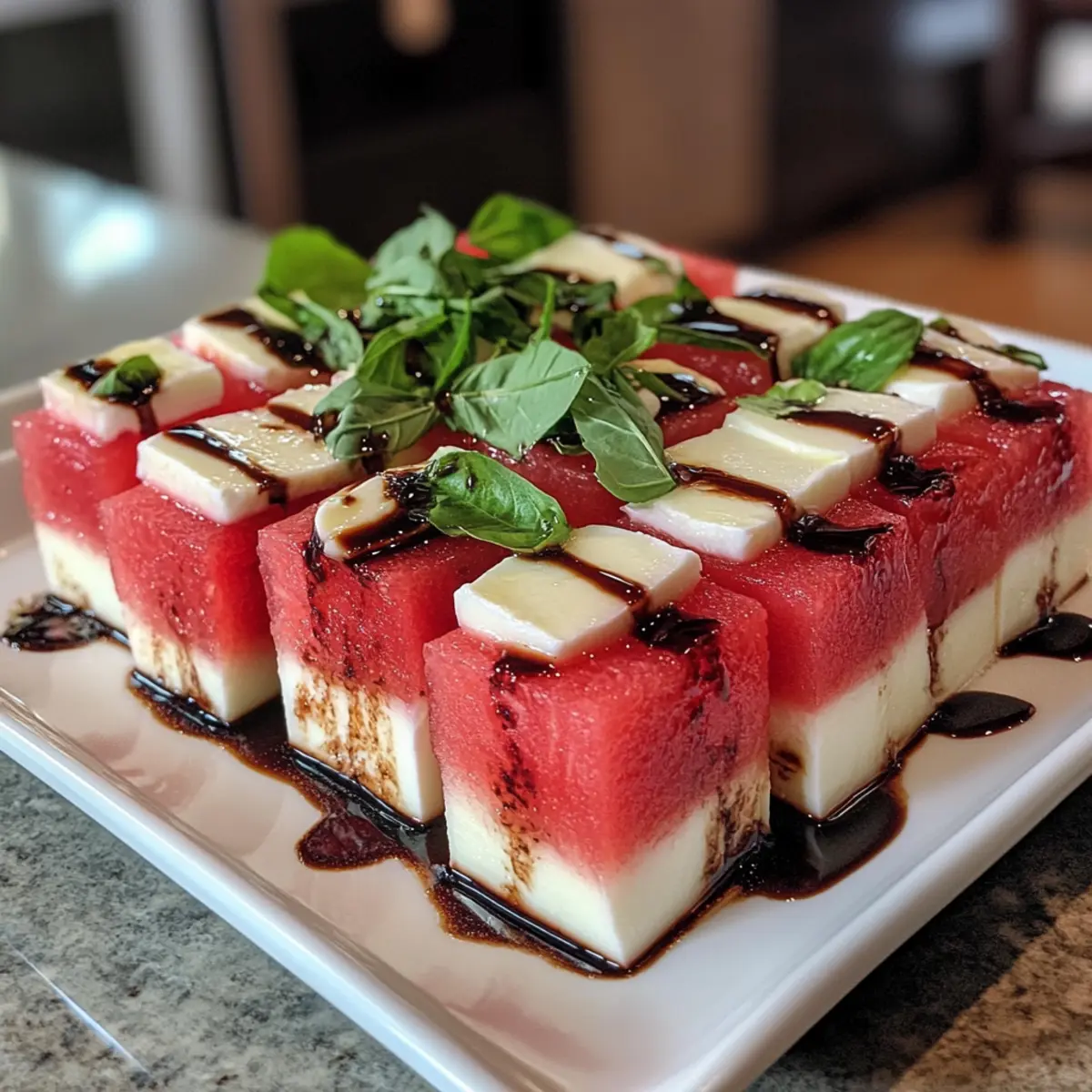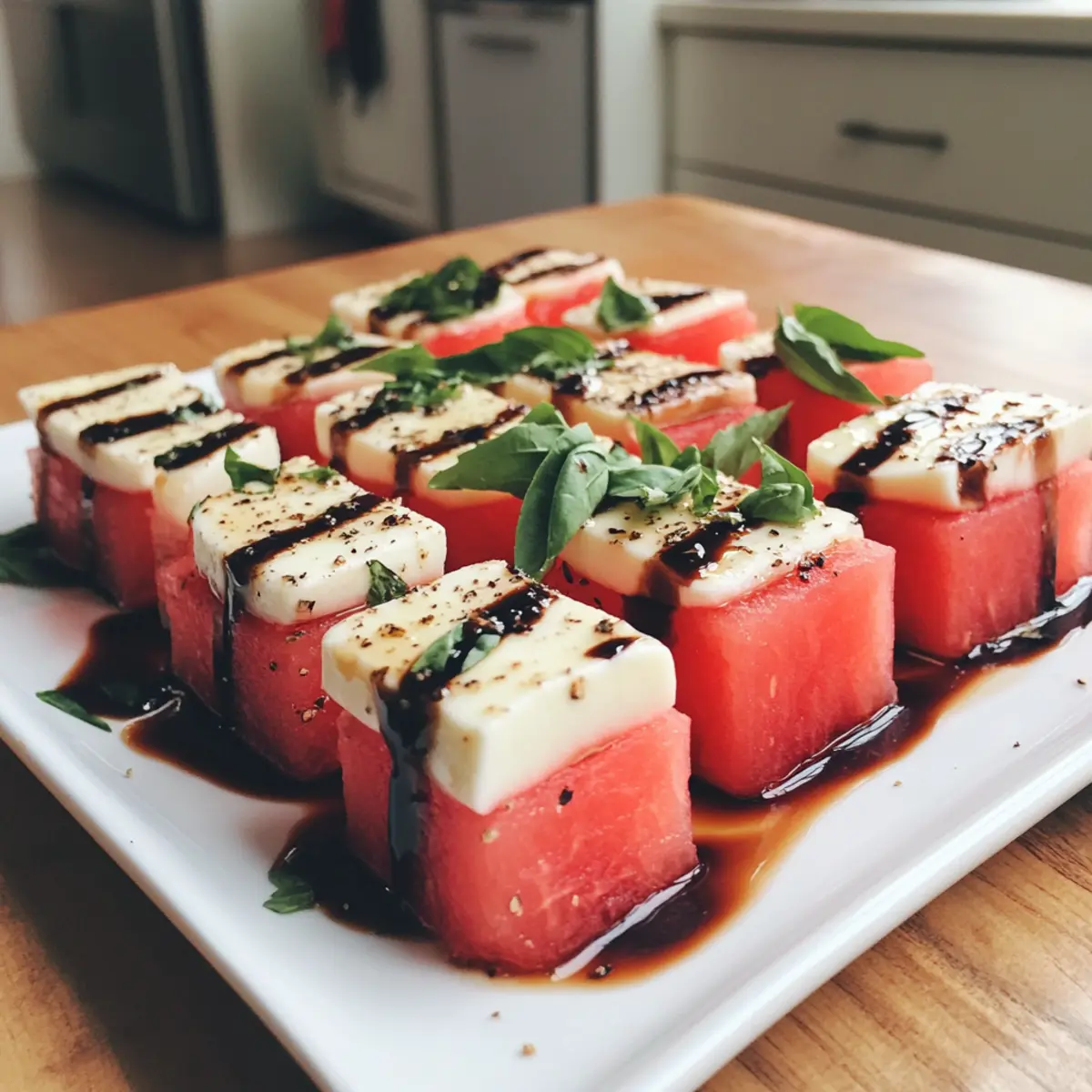 Balsamic Glaze Consistency: Ensure your balsamic glaze cools slightly before drizzling; this helps achieve that thick, luscious finish that elevates the Watermelon Caprese.